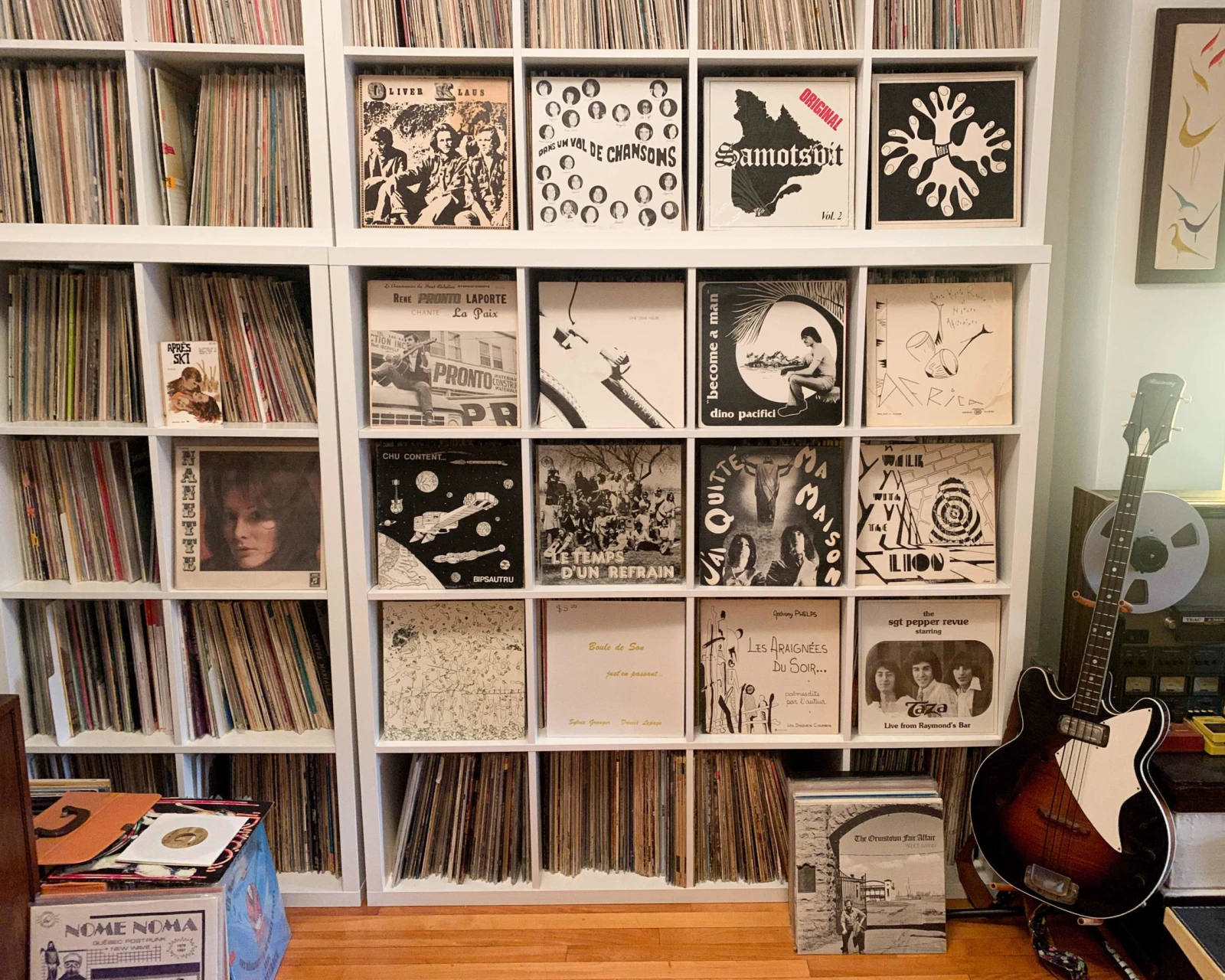 Co-directeur des Disques du Trésor National, recherchiste chez Radio-Canada et animateur du balado Mondo PQ sur la scène musicale québécoise des décennies 1950 à 1980, Sébastien est un grand érudit et l’une des personnes les mieux outillées pour m’informer sur les pressages privés. Il m’invite chez lui dans le quartier Centre-Sud.