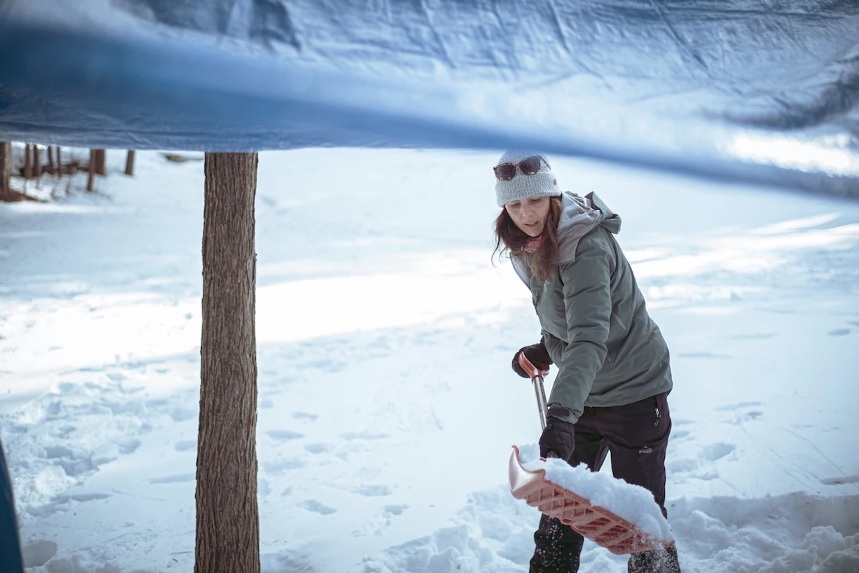 Je quitte sous un ciel encore bleu, l’air toujours aussi froid. Au menu, construction de quinzhee et baignade nordique, mais surtout, nourrir la complicité entre femmes devenues amies.