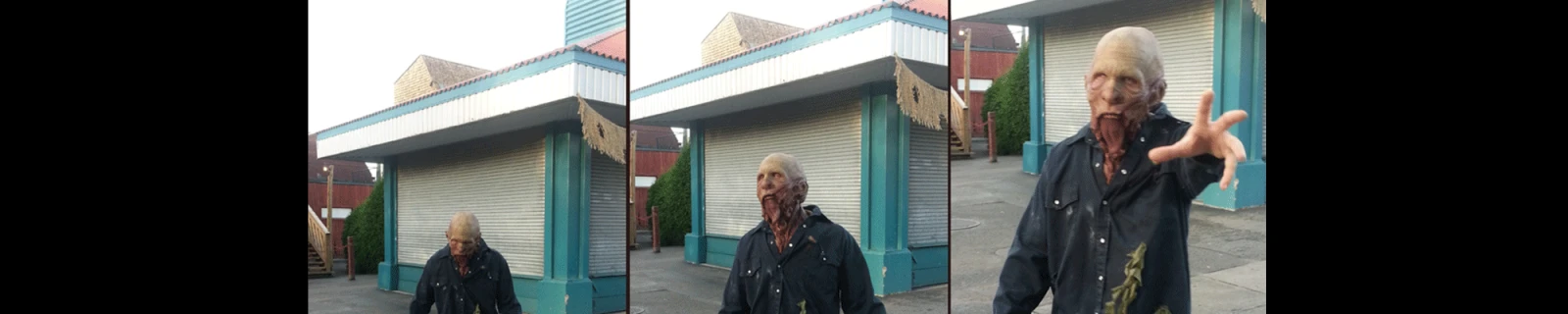 Une fois sur place, j’ai découvert un parc d’attractions quasi désert, plongeant doucement dans la brunante. Superbe décor pour accueillir une armée de zombies digne de la série The Walking Dead, qui ne s’est pas fait attendre en prenant un malin plaisir à surgir de partout, au moment où l’on s’y attend le moins. Ouais, bon, c’est relax han… (Non, pas vraiment!)