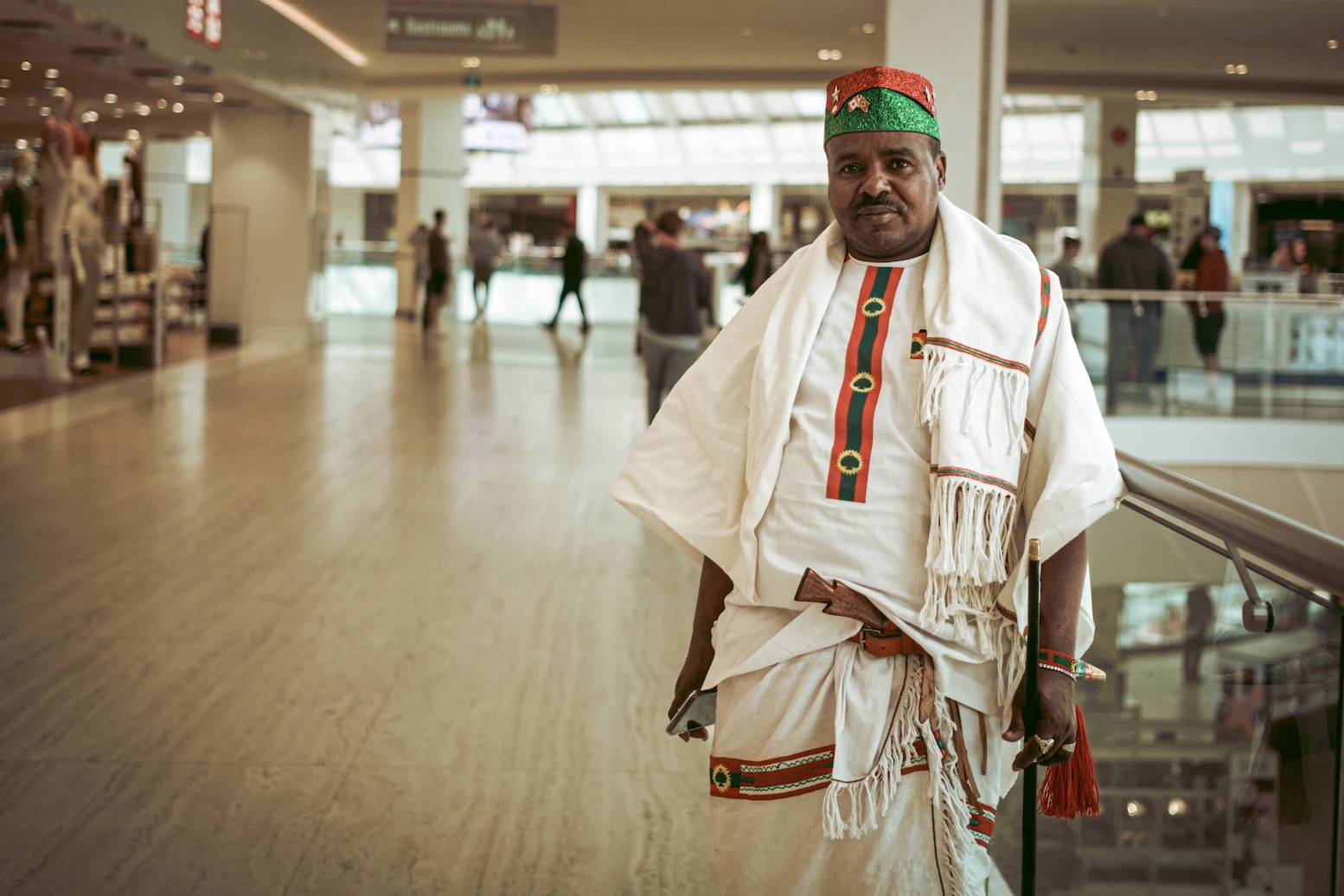 Je croque un Éthiopien en costume traditionnel oromo, son poignard afar à la taille. Derrière nous, un père bodybuilder, moustache en handlebar et bottes de cowboy. Au « West Ed », turbans et lèvres surgonflées se côtoient. Des femmes en niqab croisent des trans goths tandis qu’un remix de I’m Blue résonne dans les haut-parleurs. Délicieux.