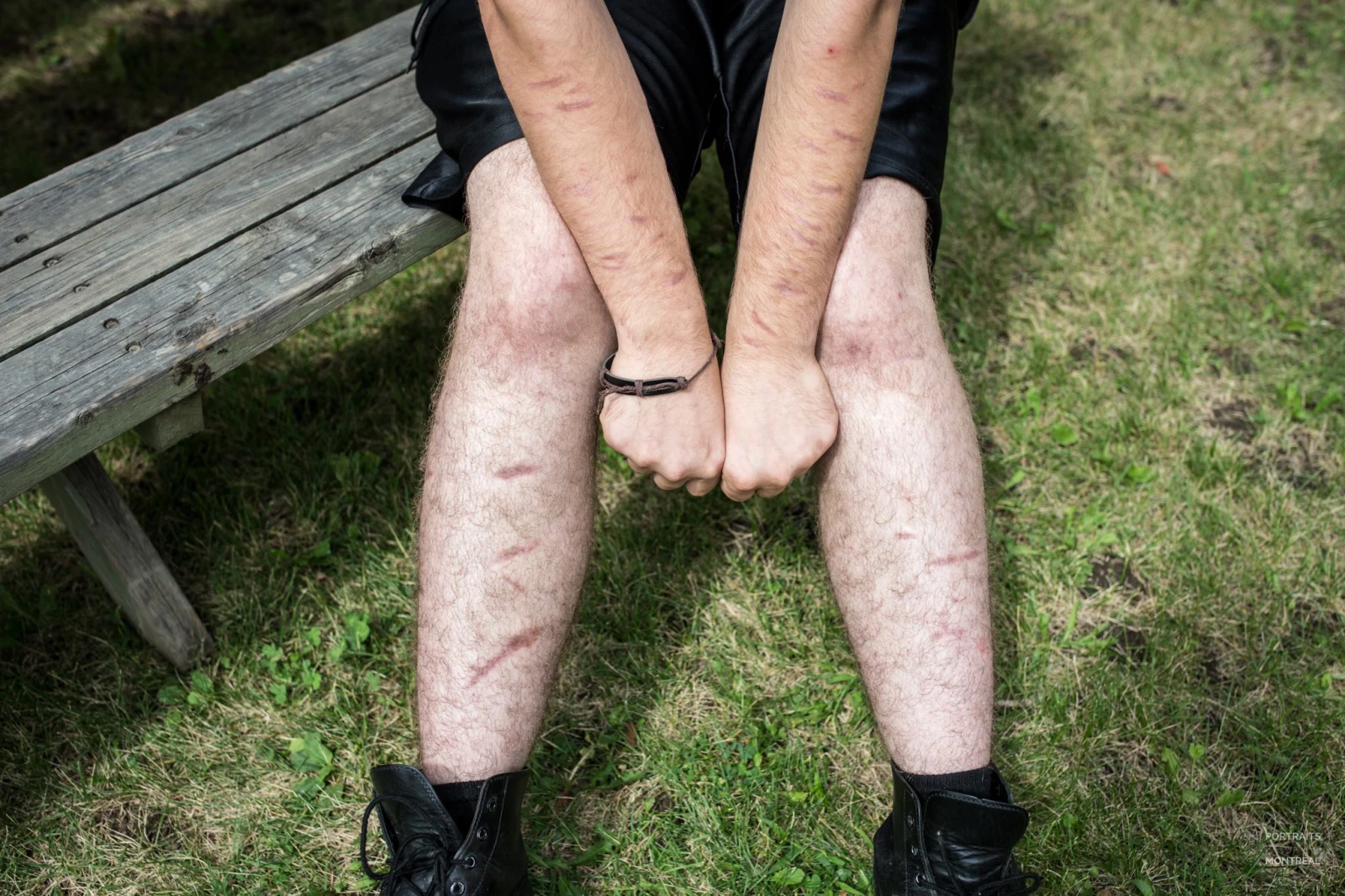 3/3 « J’ai compté que j’avais 62 marques sur moi. Elles ont toutes été faites dans la même soirée. J’ai honte de ce que j’ai fait, mais je l’assume entièrement. Selon les policiers, j’ai marché pendant 5 minutes pendant qu’ils me suivaient en me demandant de lâcher les couteaux. Je continuais à me faire des marques et je répétais le nom de l’infirmière qui m’avait le plus aidé en psychiatrie. Je suis tombé et je me suis réveillé quatre jours après, hospitalisé et attaché. Présentement, j’ai hâte de partir, mais sans mettre les choses à l’œuvre. Je ne passerai pas à l’acte, mais oui, j’ai hâte de mourir.