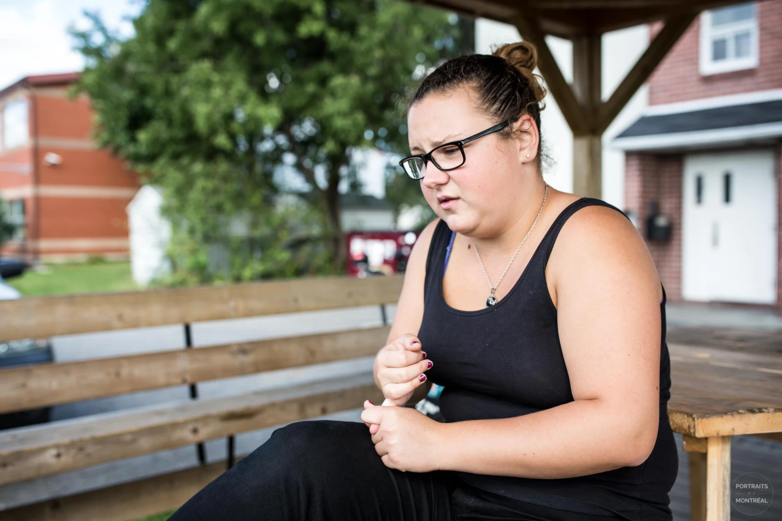 « Je me sens toujours à l’écart de la société. Aujourd’hui, tout doit aller vite, même à l’hôpital, où je travaille : tout le monde veut que la job soit faite le plus rapidement possible. On veut tous être le top du top, mais je me suis rendu compte que moi je ne voulais pas ça. Je veux juste être moi-même et faire ma vie. Si je peux juste aller chercher mes petits bonheurs, ma vie va être magnifique. Souvent j’ai besoin de m’échapper en faisant de la randonnée ; quand je suis dans la nature, je me ressource, je suis plus à l’aise et je peux évacuer la pression de cette société. Quand tu rentres en ville, ça roule, ça roule, ça roule, il faut toujours fournir, je me sens comme dans une fourmilière. Quand t’arrives dans la forêt, tu n’as plus à penser à rien ; t’as juste le goût de vivre, t’as le goût de relaxer, t’as le goût de juste être qui tu es. »