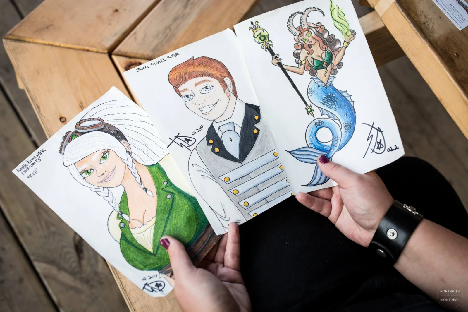 4/4 « Je dessine depuis que je sais tenir un crayon. J’ai toujours eu une connexion avec les cartoons, j’aimais ça écrire des histoires, à tel point que dans la cour d’école les gens ne comprenaient pas : je me mettais tellement dans mes histoires que je faisais des longueurs – et je le fais encore. C’est comme si j’étais dedans, je suis enveloppée ; des fois je peux même avoir des tics nerveux, des réflexes : mettons que j’imagine quelqu’un brandir une épée, je vais faire un geste de la main. Les gens pensaient que j’avais des amis imaginaires. Je fais des longueurs en marchant, et j’entre dans ma bulle. En Centre jeunesse il y avait un corridor, je l’appelais Shawnee Street. C’est un gros reliever de stress, et c’est un moyen de me recentrer sur moi-même. »