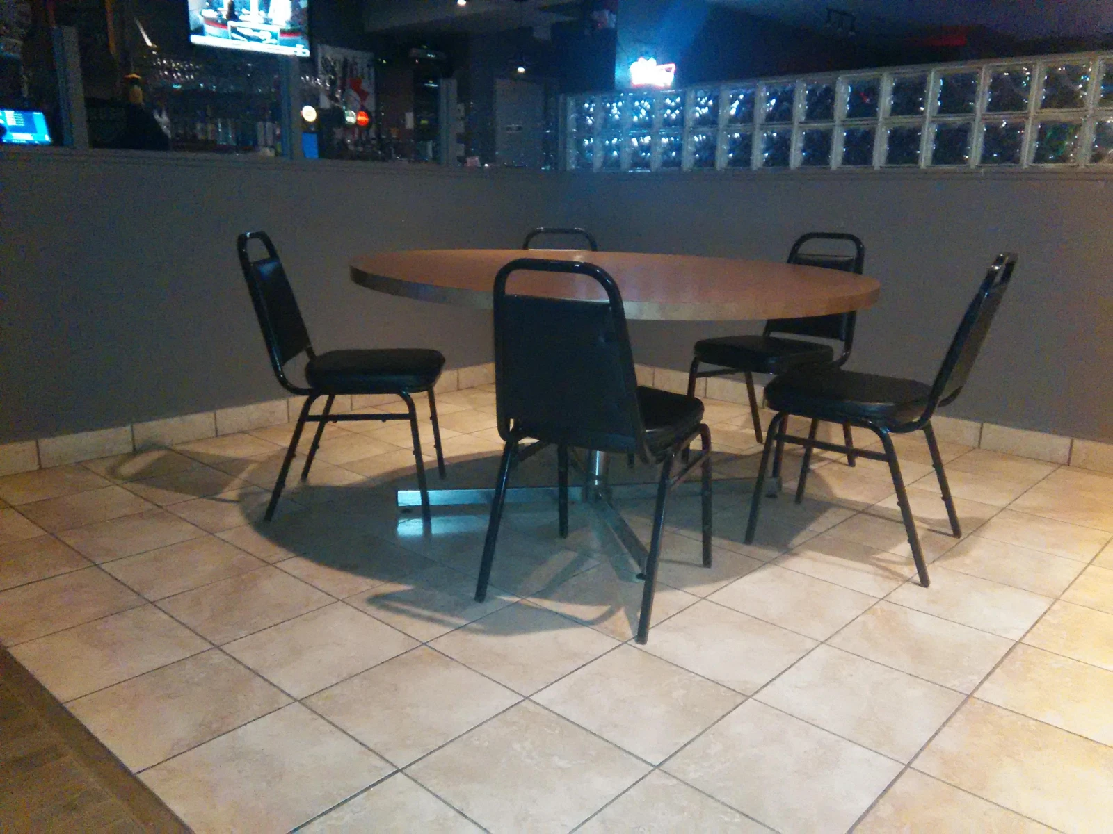 Hargneux à la vue d’une table de billard, jeu que nous considérons comme ridicule puisqu’il distrait le client dans son ingurgitation de boisson, nous sommes heureux de constater qu’aucun client ne s’abaisse à venir entamer une partie. À notre avis, cette table doit être hors fonction et ne servir qu’à recevoir des plateaux d’omelette western une fois le soleil levé.