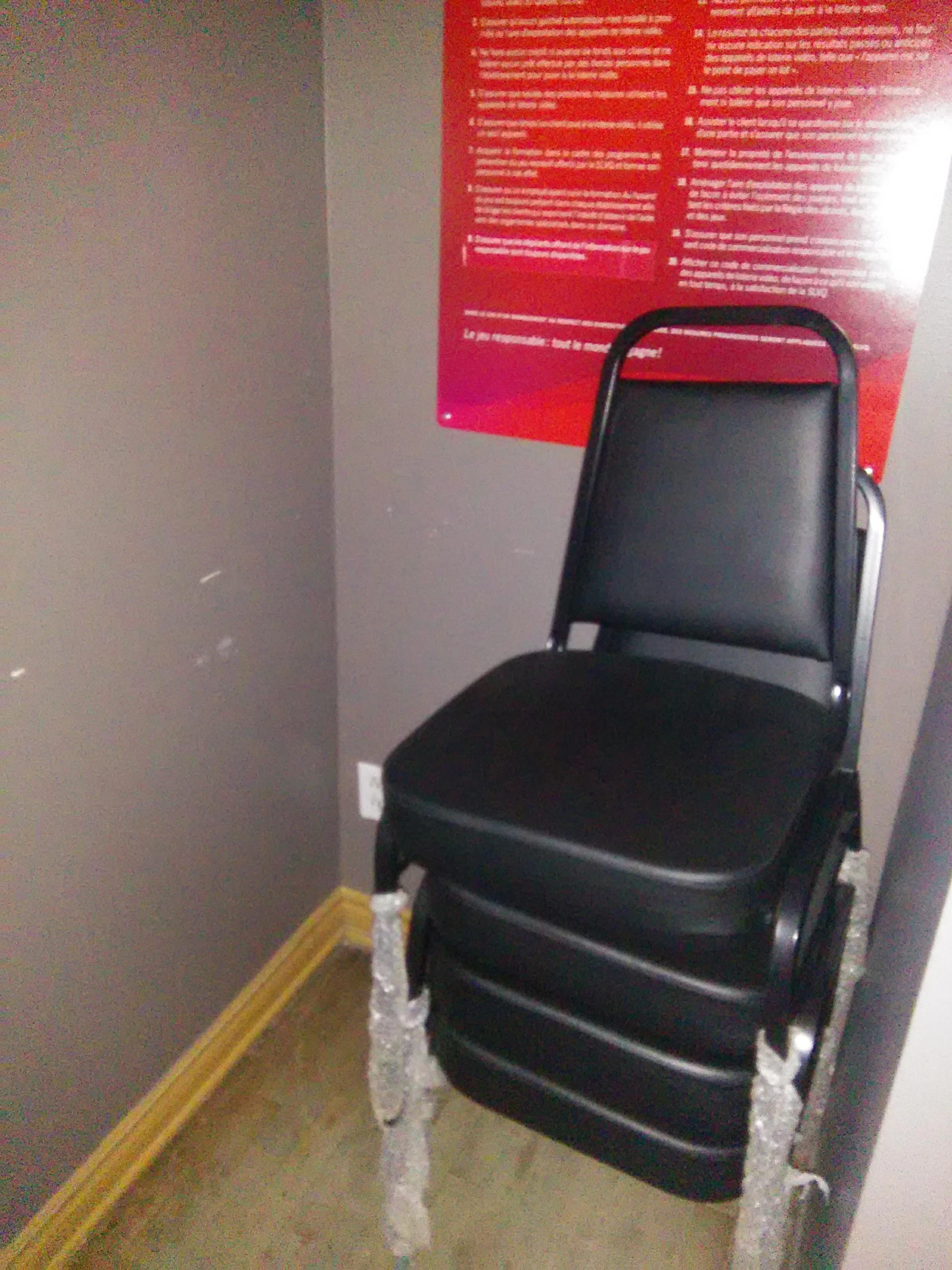 Que dire aussi de cette empilade de chaises soigneusement coiffées de papier bulle?