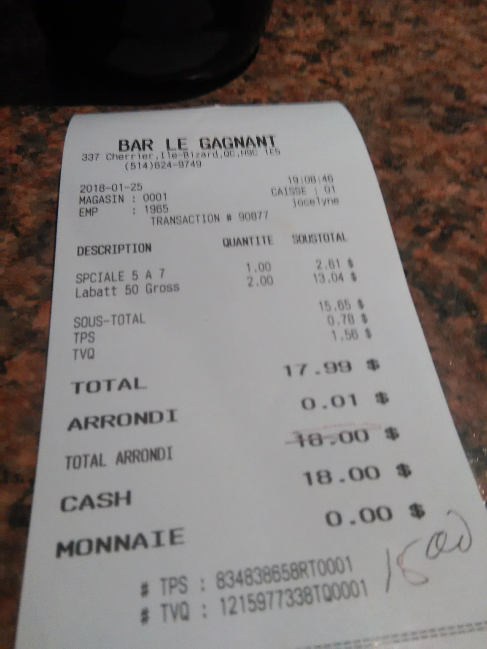 Rien d’extraordinaire côté prix : Le Gagnant n’offre pas de rabais dignes de ce nom, mis à part la Budweiser à 2,75$ le verre.