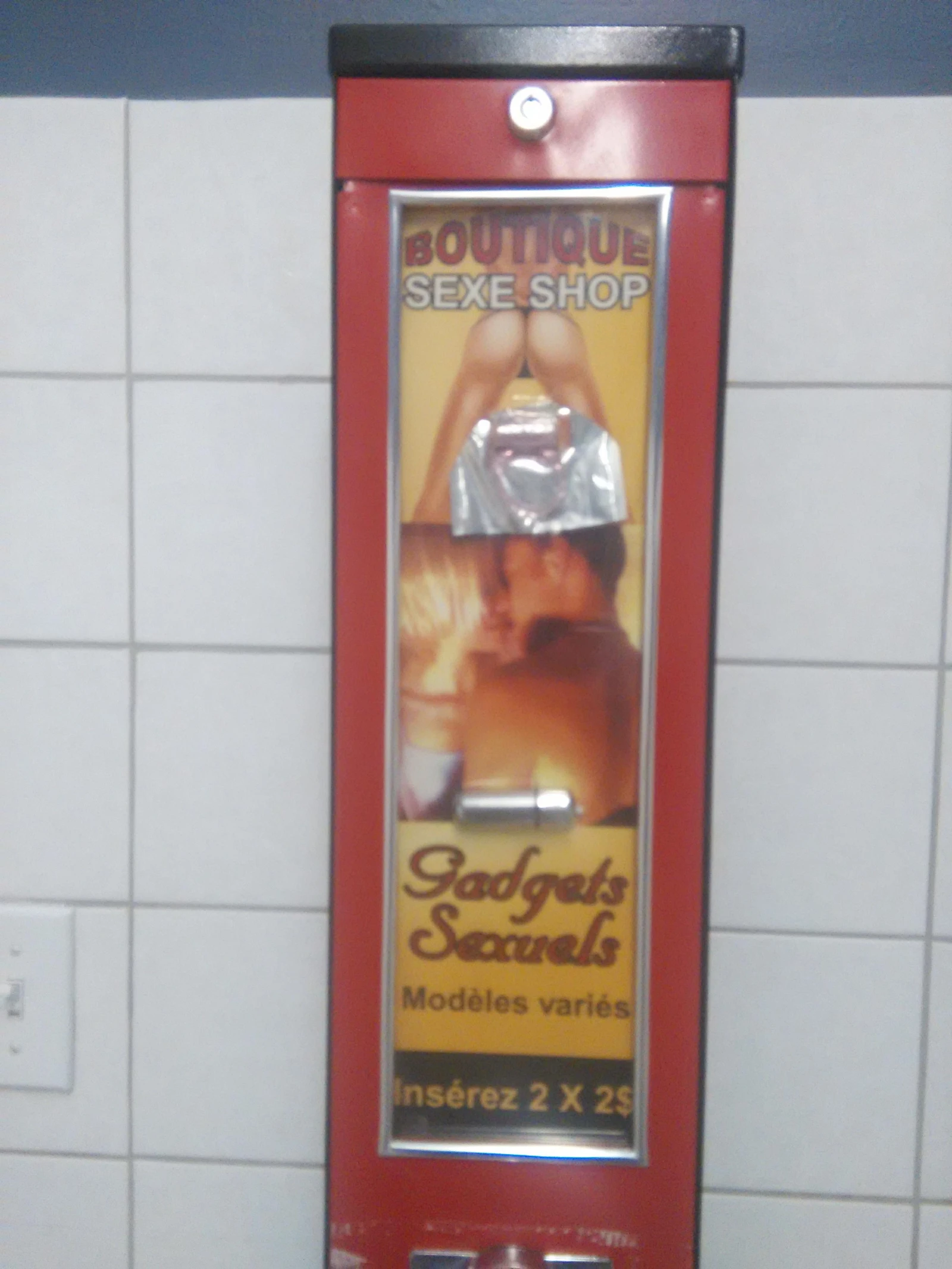 Au lieu de vaquer à nos besoins urinaires, nous restons de longues secondes immobilisés devant cette machine libidinale datant fort probablement de 1991.