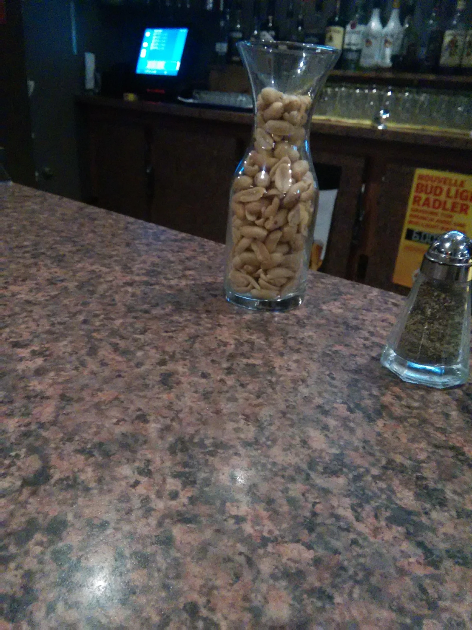 Affamés après tant d’émotions, nous nous laissons sustenter par ce vase d’arachides salées constamment rempli à volonté pour la modique somme de zéro dollar.