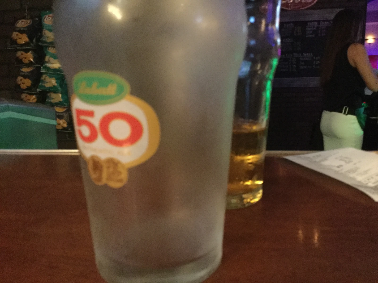 Sans perdre plus de secondes, nous invitons la barmaid à venir prendre notre commande. Plutôt heureux de pouvoir soigner notre mal avec un pichet de Labatt 50, seule bière du menu que nous considérons comme valide étant donné l’absence de Laurentide et de O’Keefe, nous sommes toutefois déçus de constater que le bar a succombé à la pression populaire des bières mondaines, notamment la mièvre Shock Top.