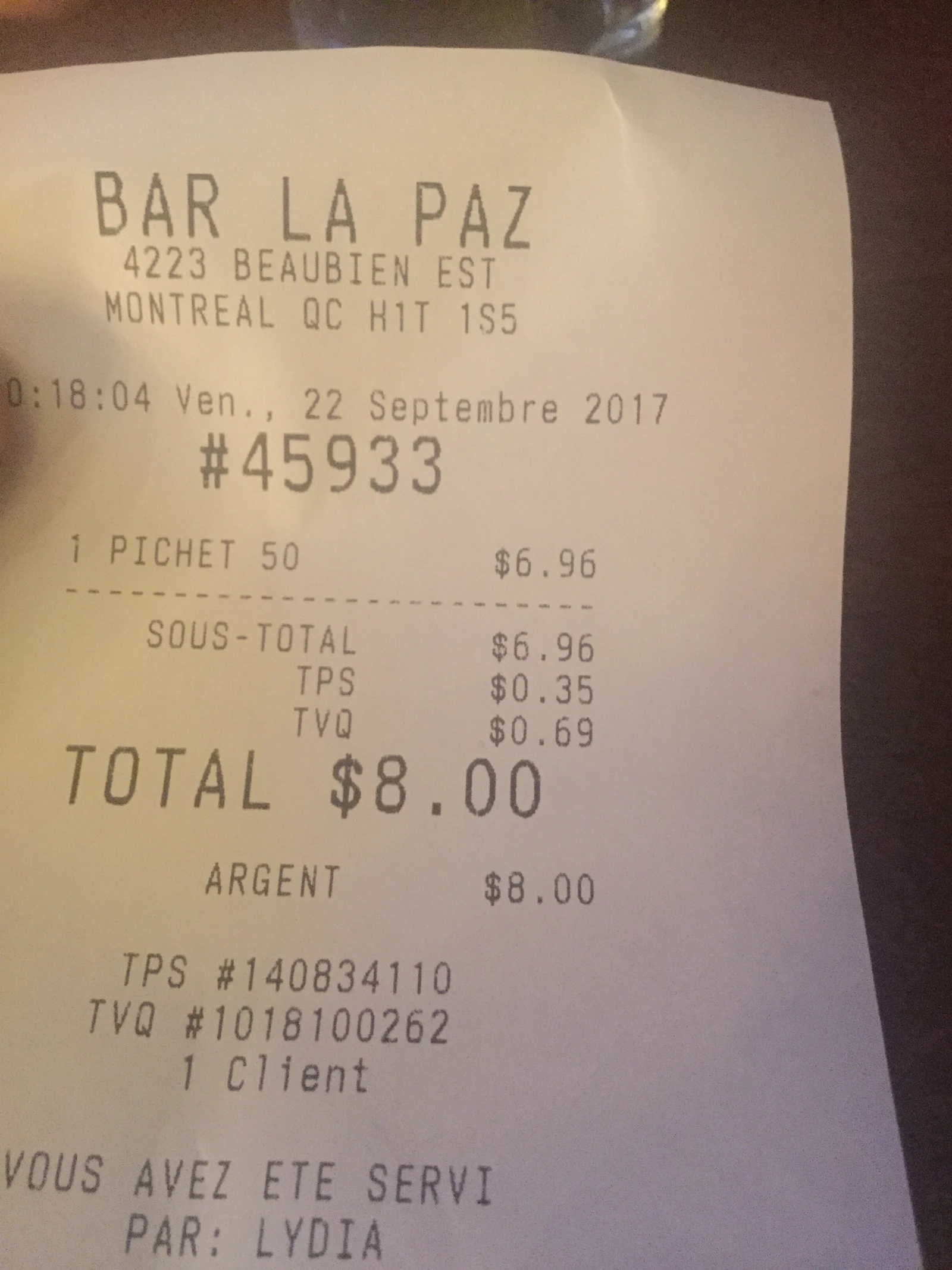 Envoûtés par l’odeur de cigarette somme toute proéminente du vestibule, nous comprenons rapidement que nous avons été trompés. Loin d’être aussi crasseux qu’aurait pu le laisser deviner ce premier contact, le La-Paz surprend par sa propreté générale, ses tables lisses, ses verres nettoyés et son odeur neutre aux relents de ménage.
