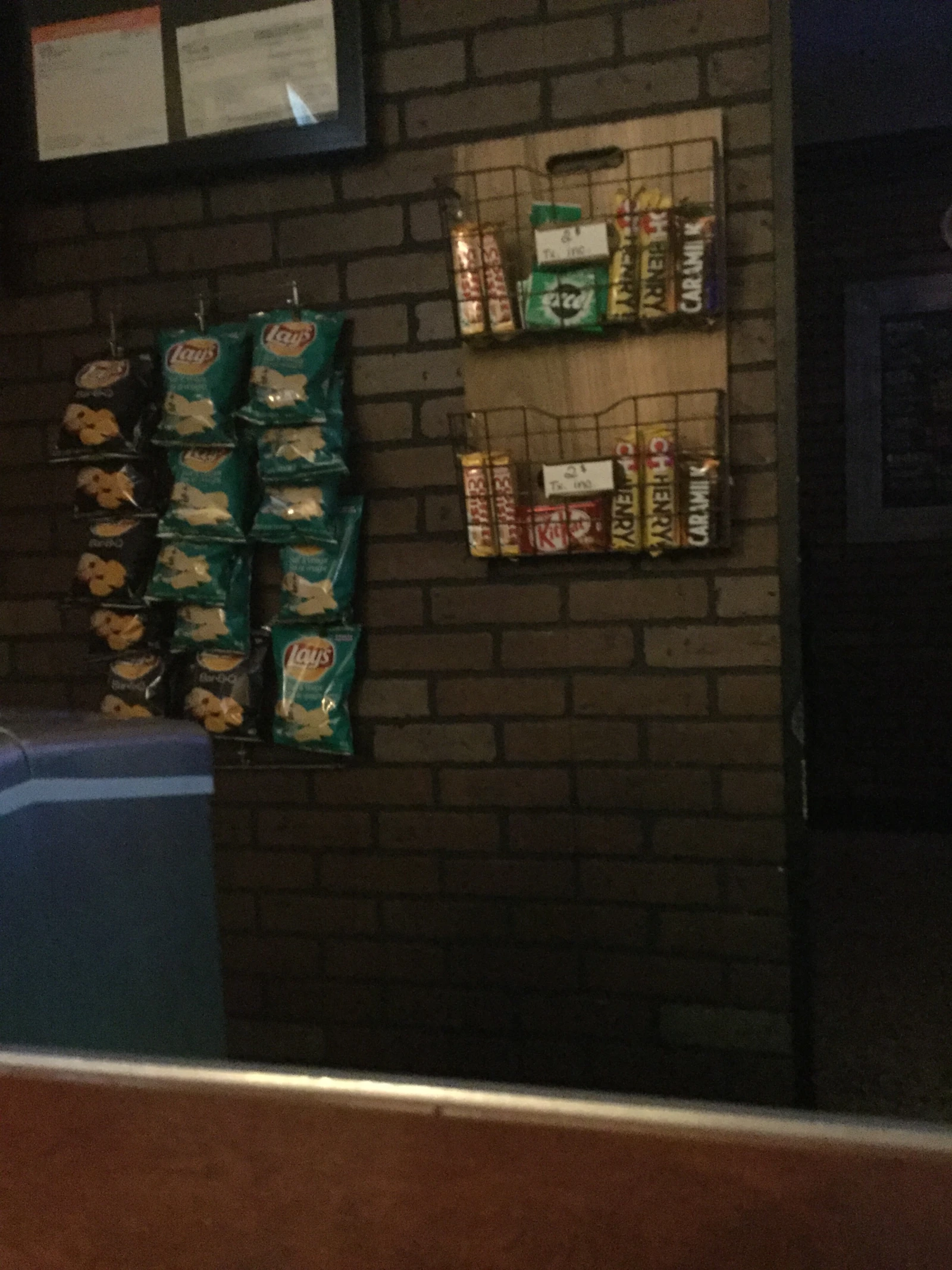À des fins strictement journalistiques, nous prenons la peine de demander le menu, même si nous sommes rassasiés par les nombreux refills gratuits de peanuts au barbecue. À notre grande indifférence, nous apprenons alors que ledit menu se limite aux étalages de sacs de chips, de barres de chocolat et de paquets de gommes placés devant nous.