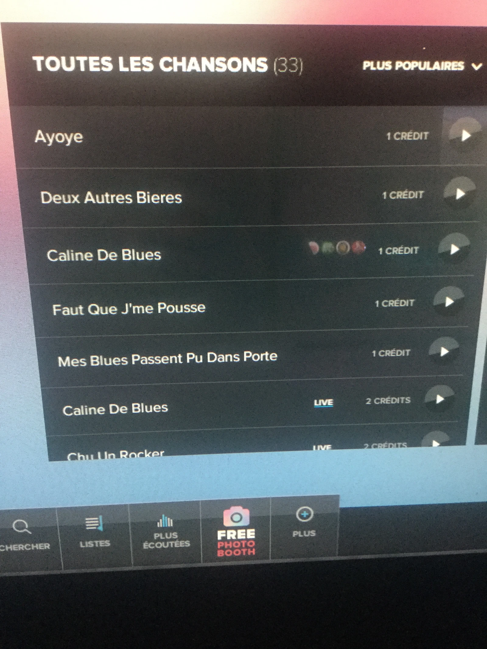 Au jukebox, rien ne va plus. Une sélection de musique contemporaine nous est proposée, ce qui contrevient à l’esprit traditionnel de la taverne québécoise.