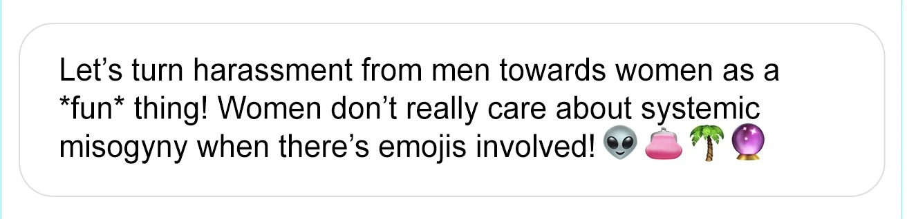 L’utilisation d’emojis exacerbera la violence des hommes qui – avouons-le – ne veulent absolument pas voir une femme random tenter de corriger leur mode de vie, leur game ou leur égo.