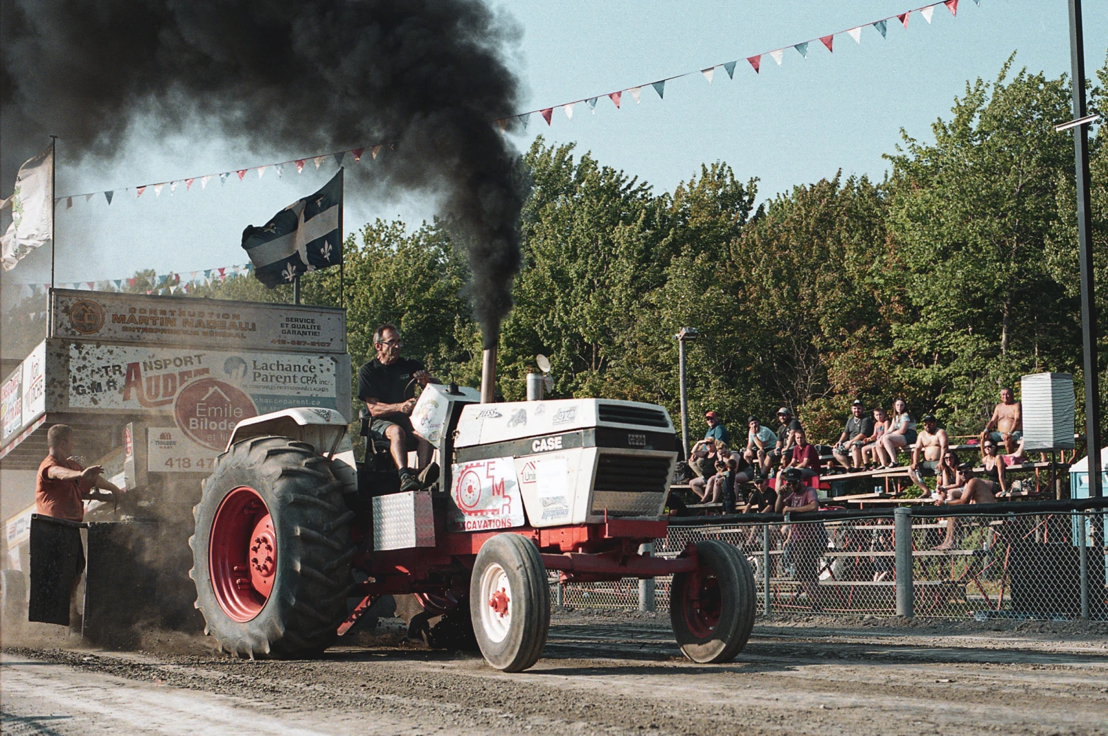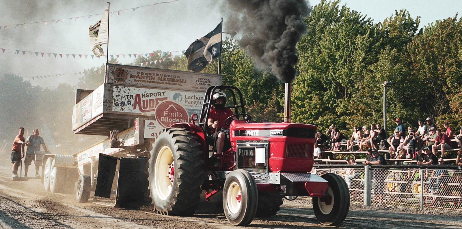 Sous un ciel immaculé couleur azur, un tracteur-zamboni s’affaire à égaliser la piste de glaise. Un juge inspecte méticuleusement les installations alors qu’AC/DC résonne à tue-tête. On pèse les véhicules participants sur une balance industrielle. Les organisateurs travaillent vite, prennent les mesures de manière précise, presque brusque, tout est bien rodé. Tradition beauceronne née à la fin des années 70, samedi dernier avait lieu la 45e édition du Tire de tracteurs St-Bernard, ça aurait été un sacrilège de manquer pareil événement.