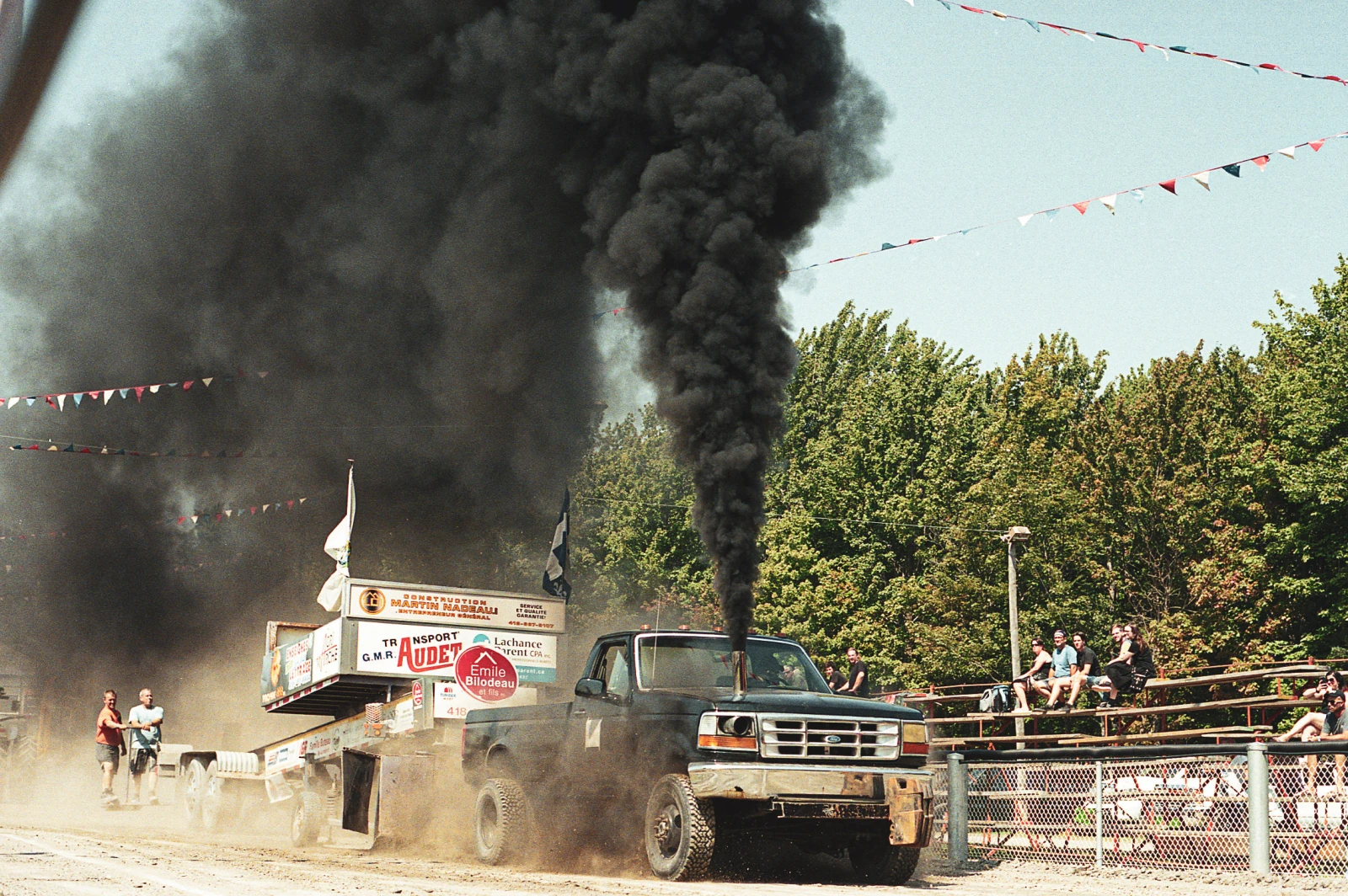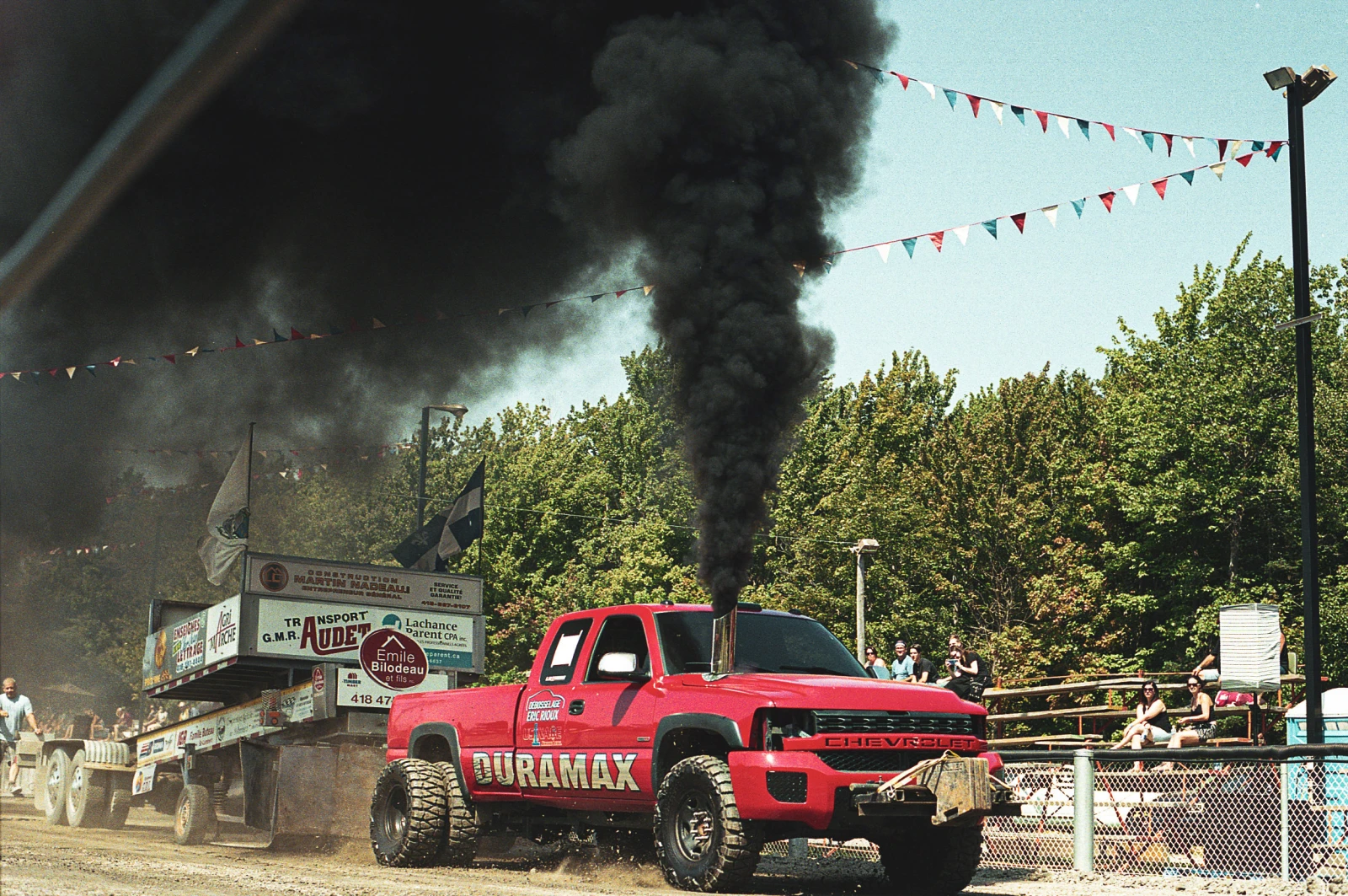 Au menu, compétition de tire de pick-ups suivie du volet tracteurs en fin de journée. Dans les paddocks improvisés, toute une diversité motorisée défile sous mon regard illuminé de pauvre cycliste montréalais. Des six-roues surélevées à la suspension barrée, des carrosseries exotiques aux couleurs de garage, des turbo diesel à gros cylindres Heavy Duty. Une mosaïque dépareillée de bricoles à pistons allant du modèle de l’année aux vintages des décennies antérieures. L’atmosphère est prometteuse.