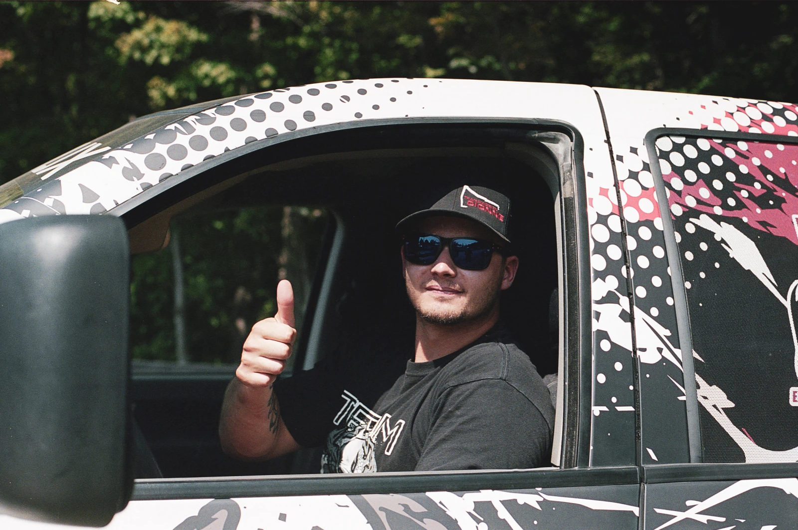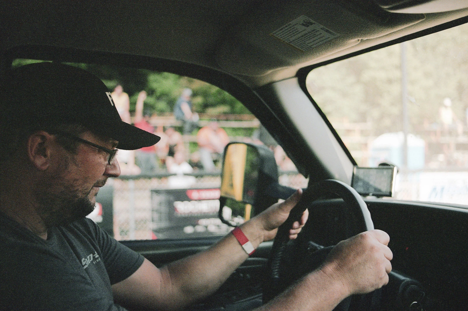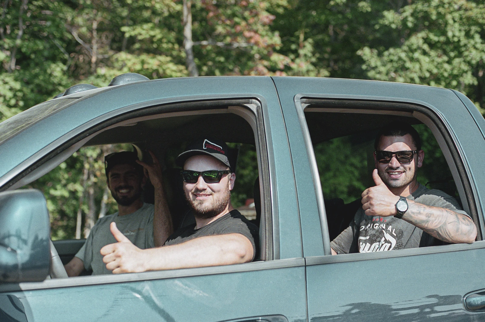 Il me propose d’embarquer à ses côtés pour sa deuxième tentative. J’accepte sans hésiter. On saute dans son GMC Sierra 2005 et se place en file. « Attache pas ta ceinture, t’es en Beauce icitte. » J’obéis, incapable d’enlever mon sourire d’excitation.