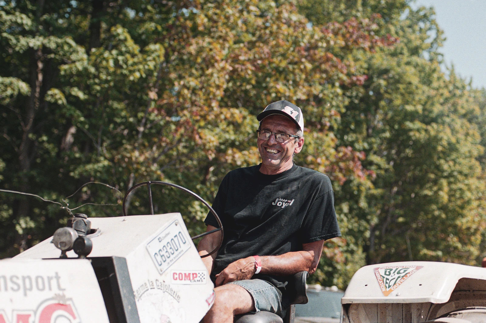 Au moment d’accueillir les premiers opposants, Félix réitère, « tout est custom là-dedans. N’a pas un qui va dans l’champ, check ben ça ». Les règlements sont les mêmes que la classe pick-ups, mais avec les deux roues du devant bien haut dans les airs, les tracteurs s’exécutent avec un sens du spectacle évident. On m’explique que la tire est un événement très québécois, peu populaire en Ontario, tandis que les États-Unis sont considérés comme la Mecque et un lieu de visite très attendu dès l’ouverture des frontières.