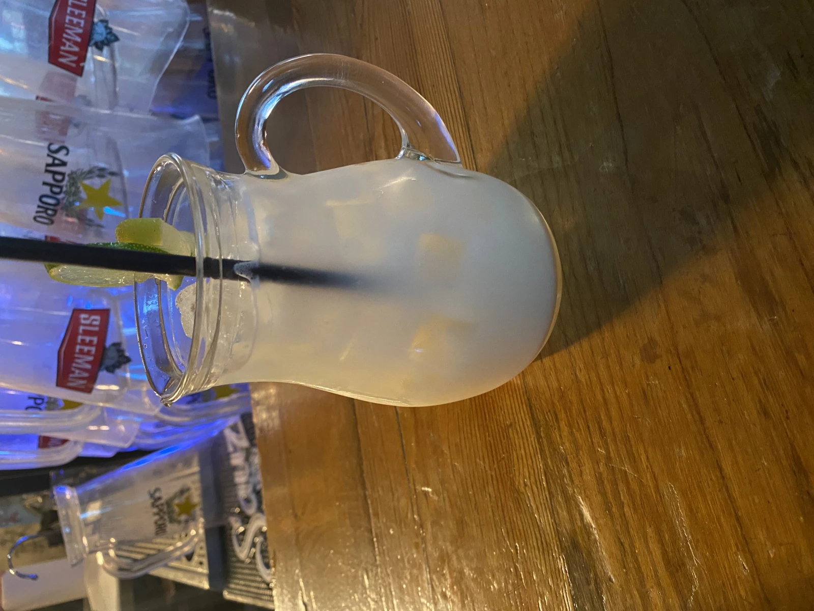 C’est aussi un sous-sol de cinéphile, je pense, car les ampoules qui éclairent le bar sont accrochées à des grosses cordes, ce qui donne un vibe Pirate des Caraïbes. En plus, une télé projetait son écran veille d’une plage, ce qui s’y agençait bien. J’y ai aussi entendu du Blink-182, un classique de bar, tandis que jouait sur une autre télé un épisode de Smallville.