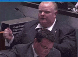 Ce n’est pas un pétage de coche en règle, mais on vous laisse tout de même sur un GIF du savoureux personnage politique qu’est Rob Ford. Entre fumer du crack et un plaquage de collègue, Ford démontre parfois en séance de conseil municipal sa légendaire diplomatie politique …