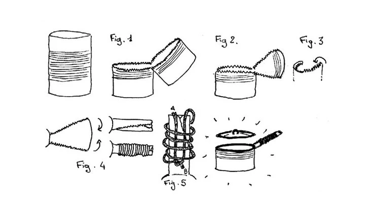 Pour cuire ses aliments, il s’est aussi bricolé “une chauffe”, comme on les faisait déjà au 19e siècle. “On prend un tube de mayonnaise en métal que l’on coupe aux extrémités et qu’on aplatit. A l’un des bouts du tube, on incise et on recourbe une extrémité pour faire une sorte de pied. A l’autre bout, on enfile un mouchoir en papier plié et on pose ça debout dans le cul d’une canette de coca où l’on ajoute de l’huile qui remonte le long du mouchoir.” Il ne reste qu’à mettre le feu et à faire un trépied avec des canettes remplies d’eau pour poser la casserole dessus.
