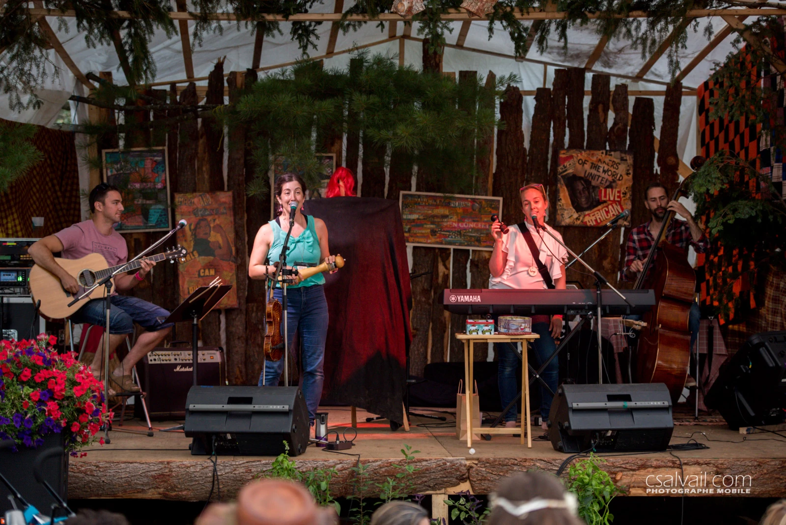 Ces installations maison comme les douches en écorces ou un stand de hot dog rétractable rendent le site vraiment sympathique. Les artistes semblent tout de suite apprécier cette ambiance à la bonne franquette comme nous l’a mentionné Philippe Brach en passant dans le Mixbus.