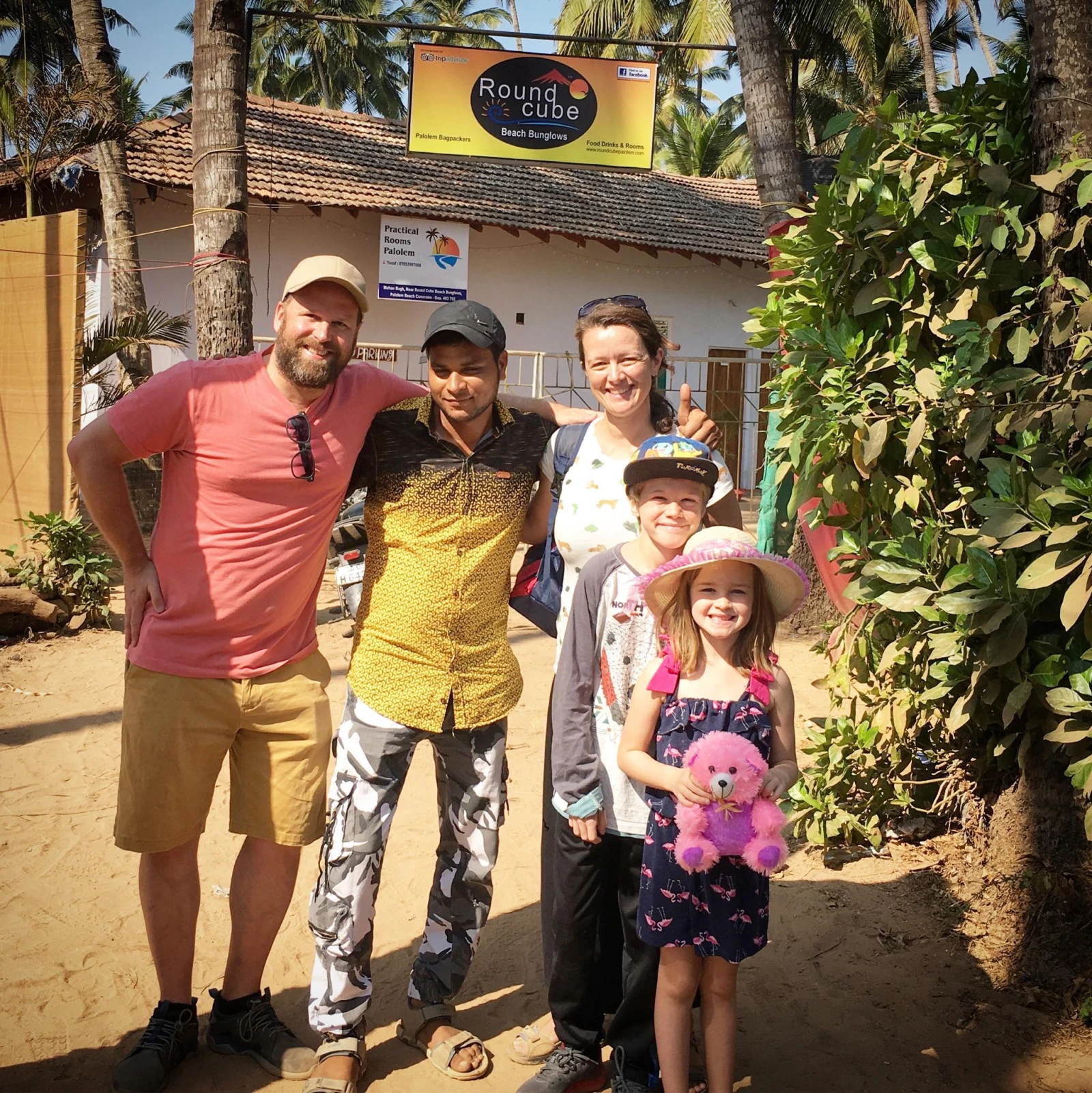 Le Roundcube beachouse propose, comme son nom l’indique, des petits bungalows près de la mer sous les palmiers. Vraiment un lieu enchanteur, même si notre family room était pas mal plus défraichie que sur la brochure. La toilette coulait et on a tué nos premières coquerelles dans le dos des enfants. La nuit, des noix de coco se détachaient des palmiers vertigineux pour s’écraser dans un boucan d’enfer sur notre toit en tôle.