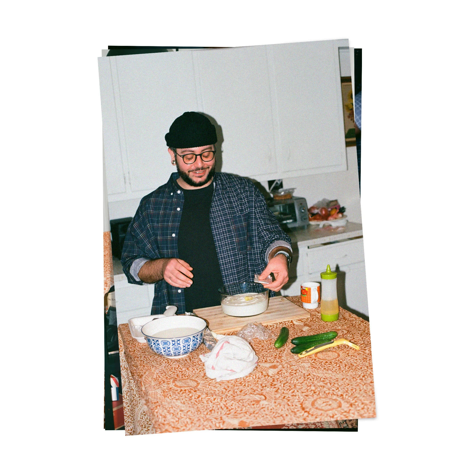 « Ce plat a toujours évoqué pour moi les traditions de ma famille. C’est un sentiment très nostalgique, qui représente bien le côté artistique et créatif de mes proches, qui imprègne tous les aspects de ma vie », explique le jeune trentenaire. « Je le fais rarement pour mes amis, par contre. Ça peut sembler étrange pour beaucoup de gens, car on ne le sert même pas avec du riz ou du pain », explique Younès. « C’est comme une tarte de viande, qui prend son sens seulement quand on y goûte avec le yogourt. »