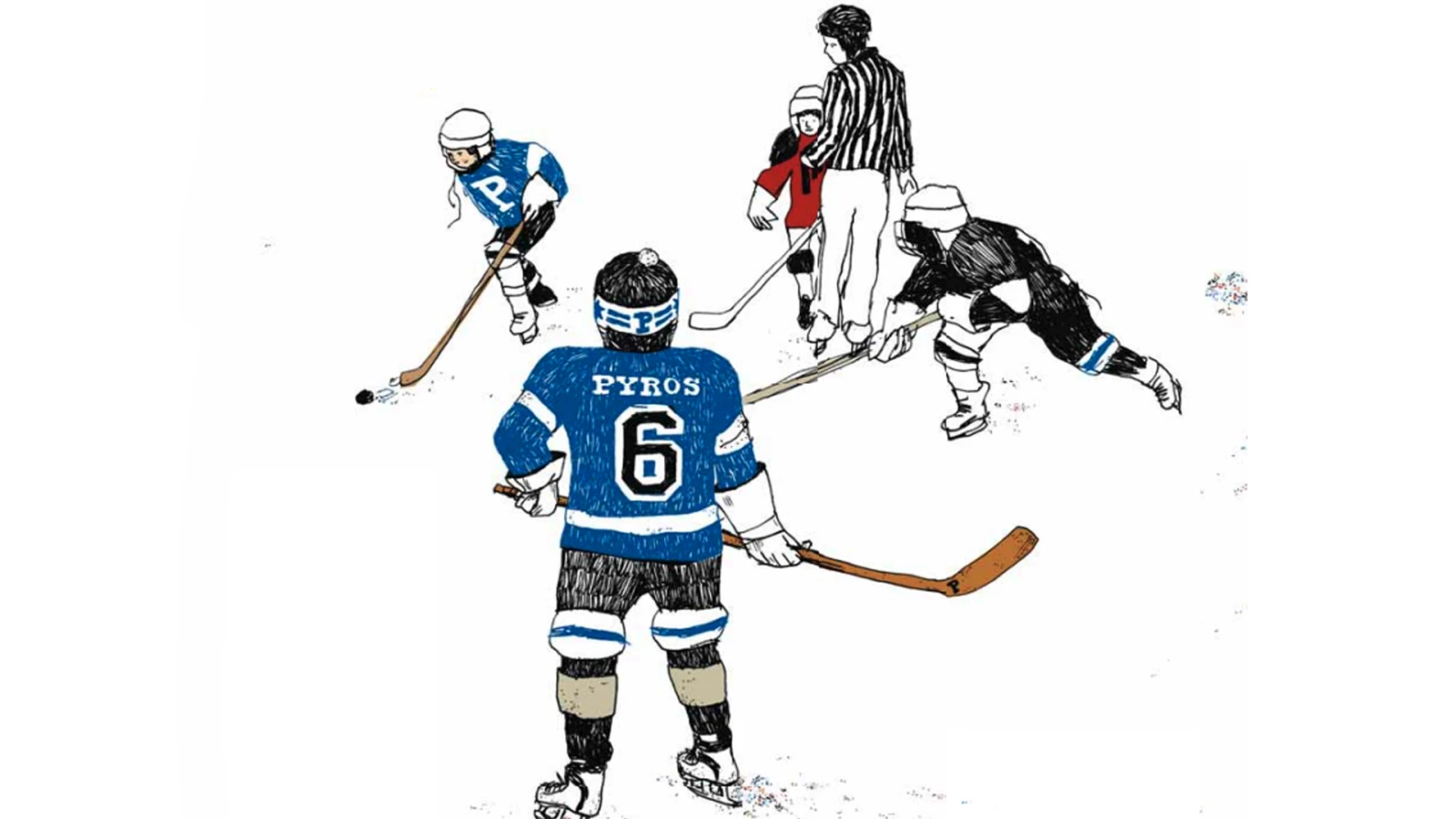 Mon équipe, les Pyros, affronte les Papetiers de Windsor. Nous, les urbains de Fleurimont, le centre du monde, méprisons nos adversaires de Windsor qui ne sont que de vulgaires gars de campagne qui ne connaissent rien mis à part faire pousser des coupes Longueuil.