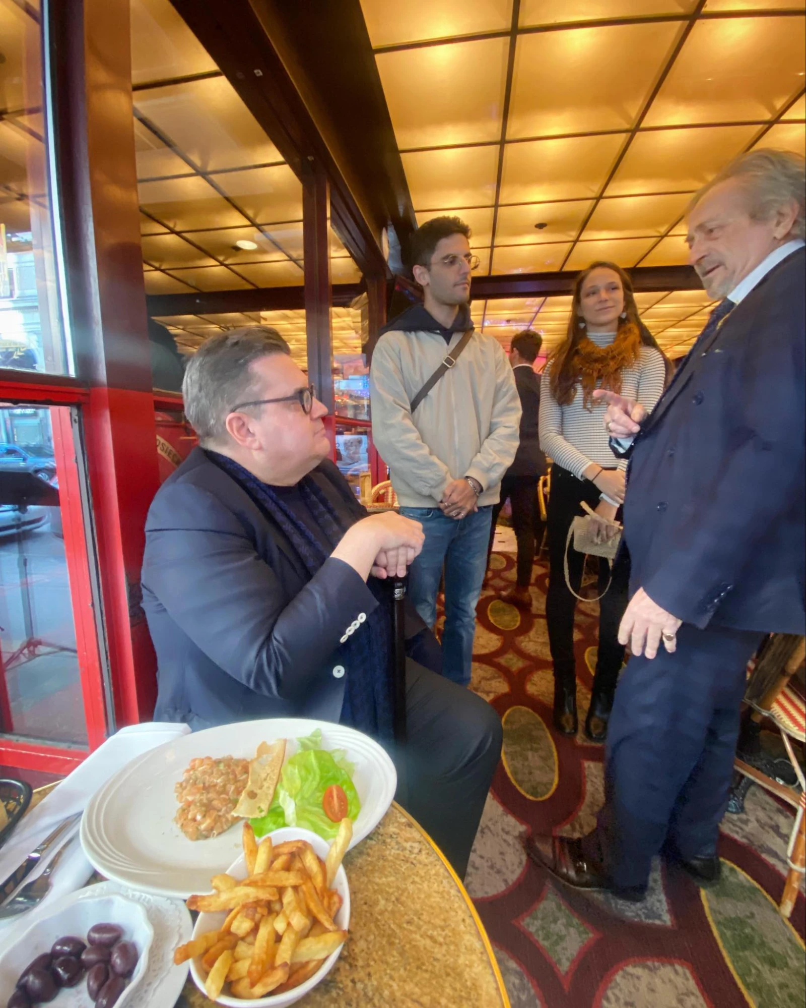 Le restaurant est pas mal rempli. Entre alors un ami de confession juive de Denis, flanqué de deux jeunes Israéliens. La discussion est émotive, puis le trio prend place à la table voisine.