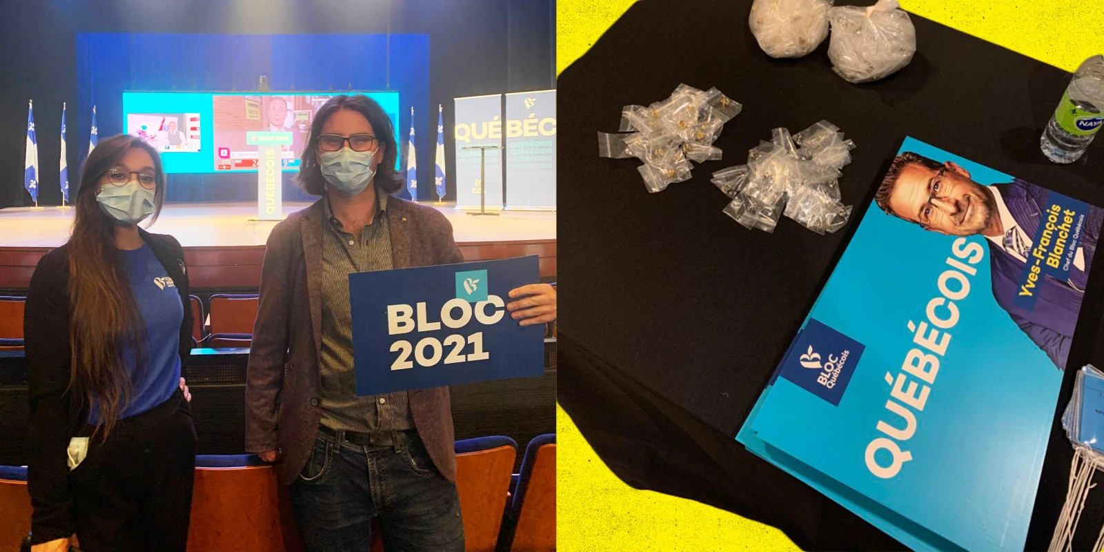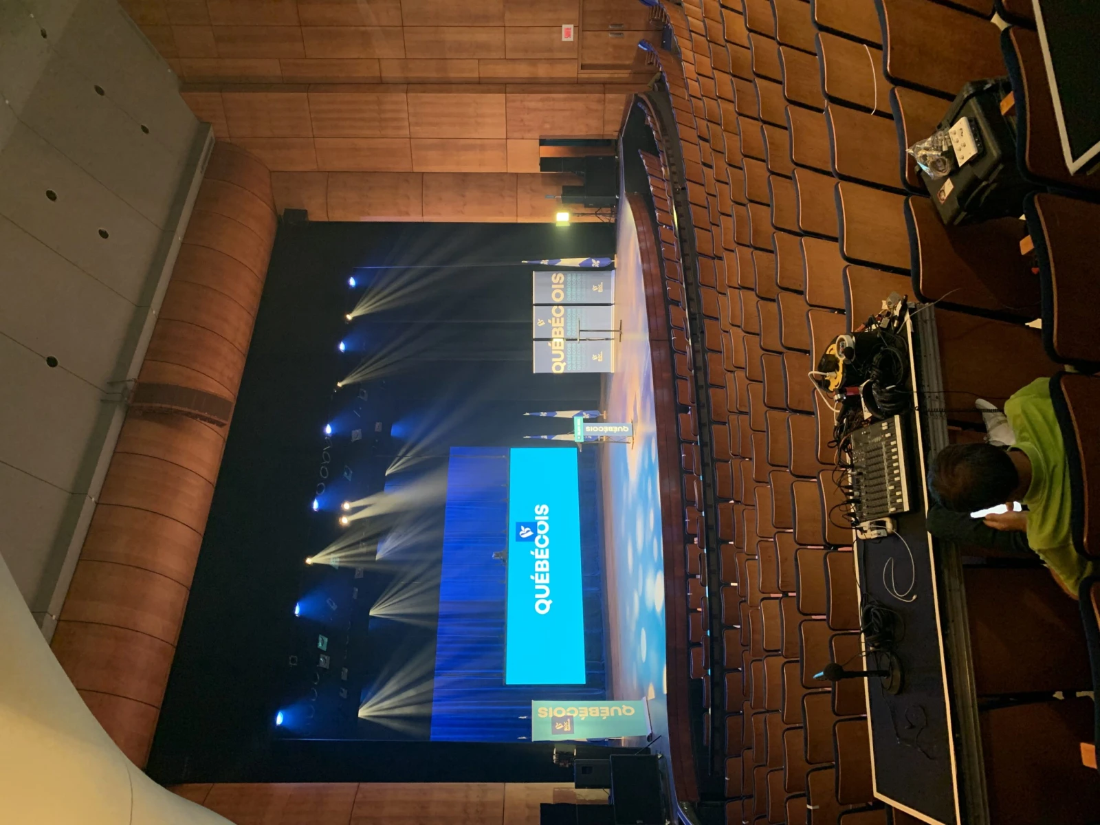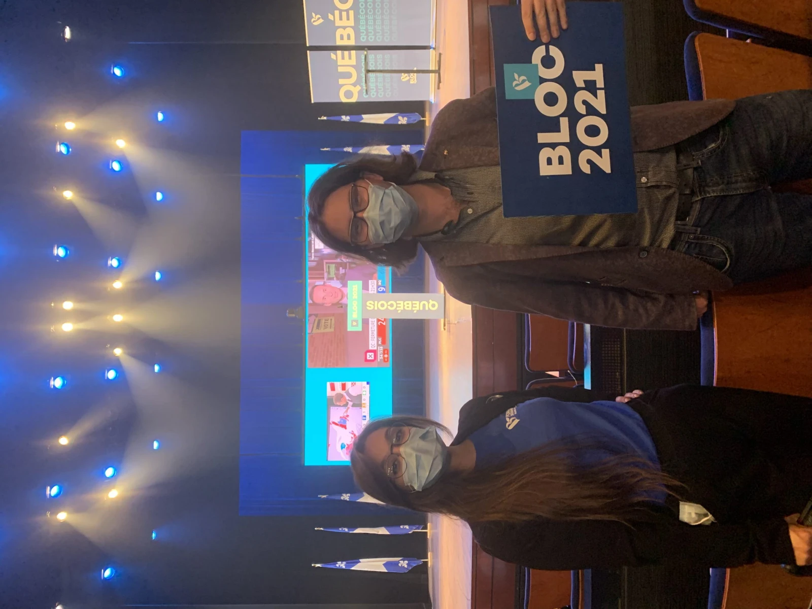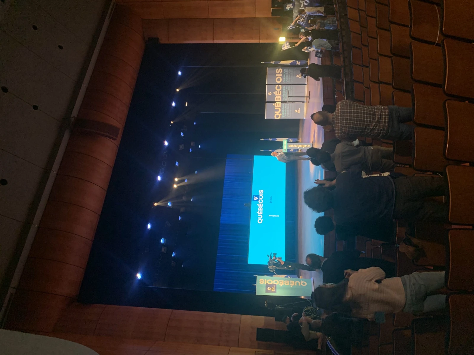 En arrivant au Centre Pierre-Péladeau autour de 18h, il n’y a pas un chat mis à part le staff du Bloc québécois en train de préparer la soirée et des collègues de divers médias qui s’installent tranquillement. C’est ici qu’aura lieu tout à l’heure le rassemblement électoral de la formation souverainiste.