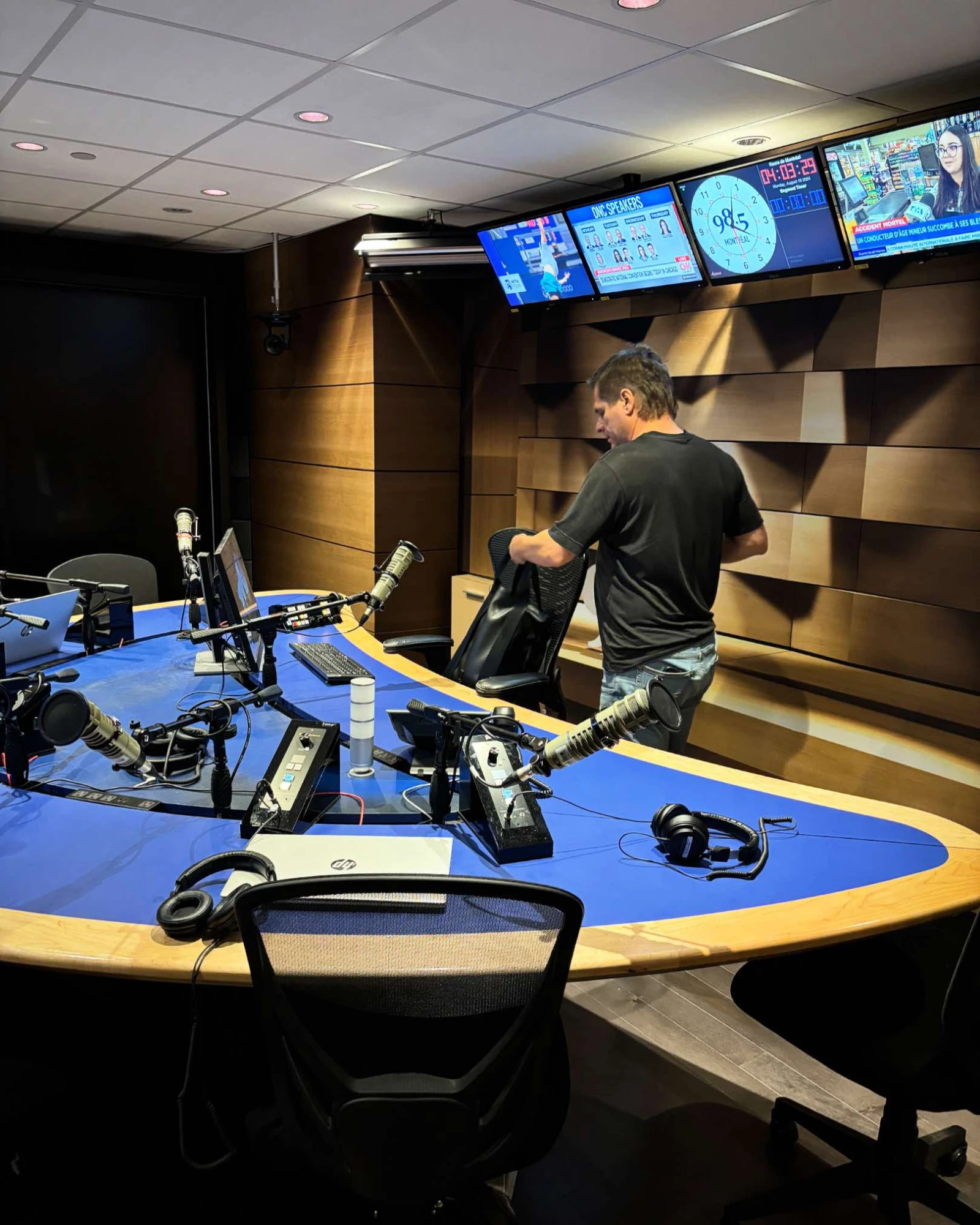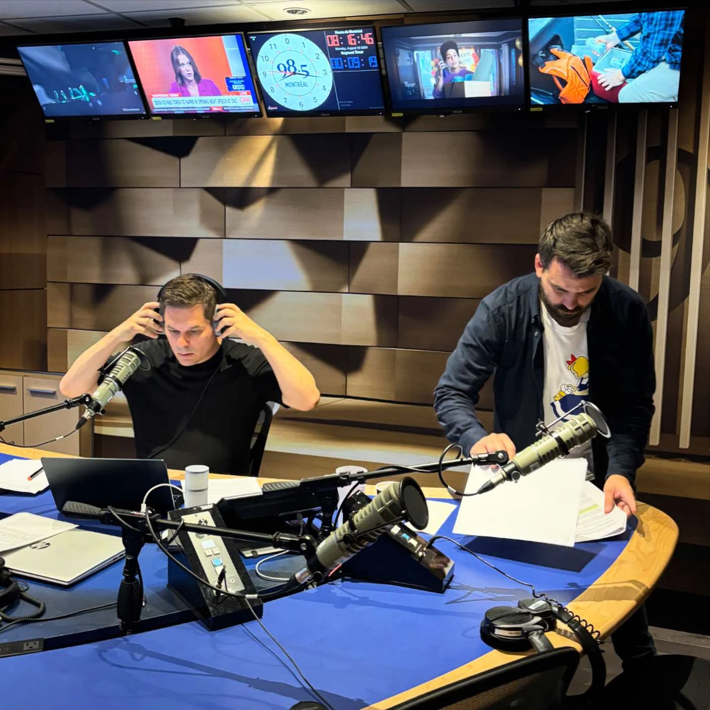 Le morning man entre au 800 de la Gauchetière à l’aide de sa puce électronique, fonce vers la station quasi déserte, sauf pour Larry Dufresne, le metteur en ondes, déjà derrière sa console. « J’ai commencé à sortir quelques extraits! », lance-t-il, en saluant son animateur.