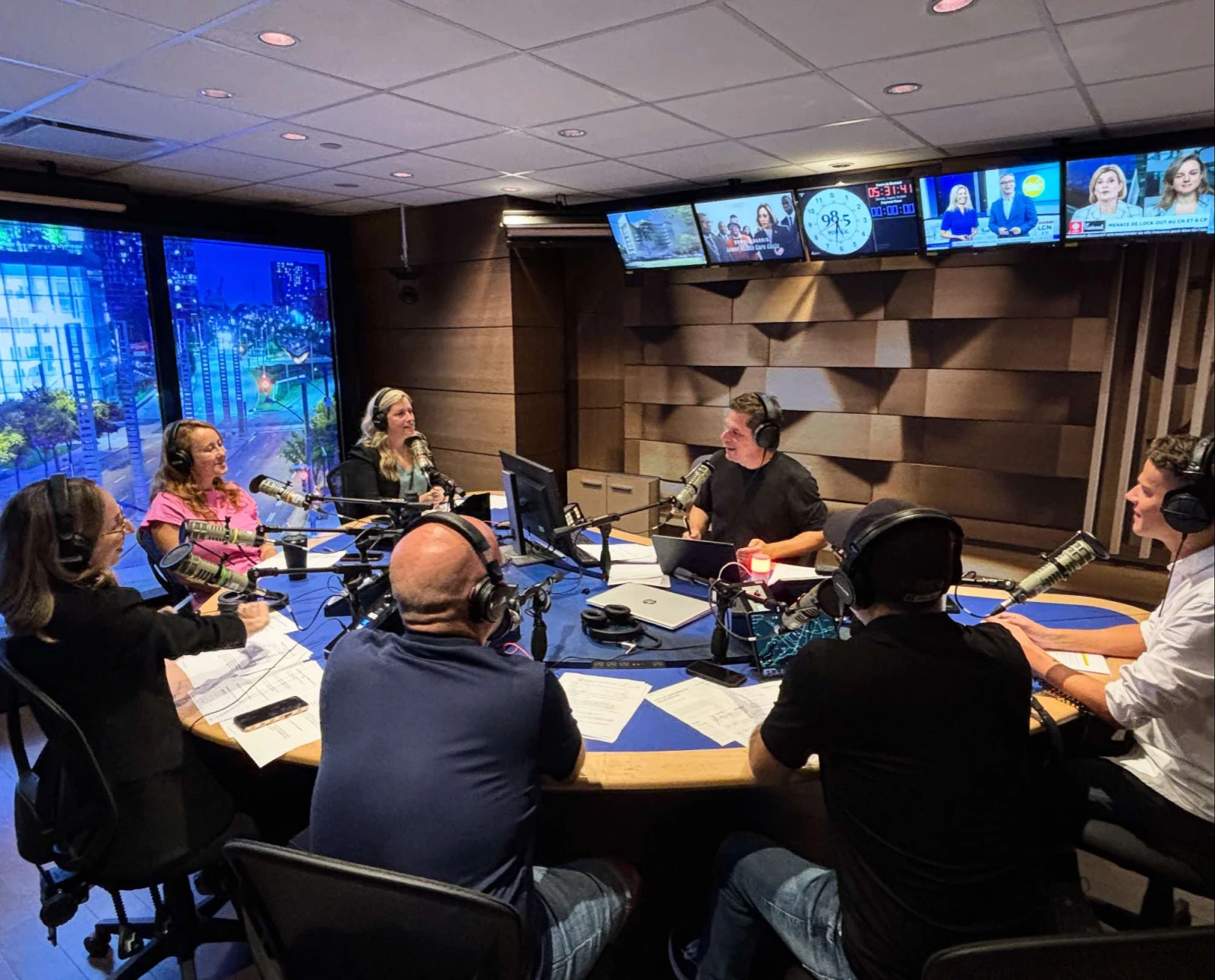 Plus que quelques minutes avant 5h30, au tour de l’équipe d’entrer en studio pour s’installer autour de la table en échangeant brièvement sur leurs week-ends respectifs. C’est comique, de voir les visages associés à ces voix pourtant si familières. Celles de Marc Brière (circulation), de Catherine Brisson (culture), de Bénédicte Lebel (faits divers), Yanick Bouchard (sports), Stéphanie Gagnon (nouvelles) et Frédéric Labelle (réseaux sociaux).