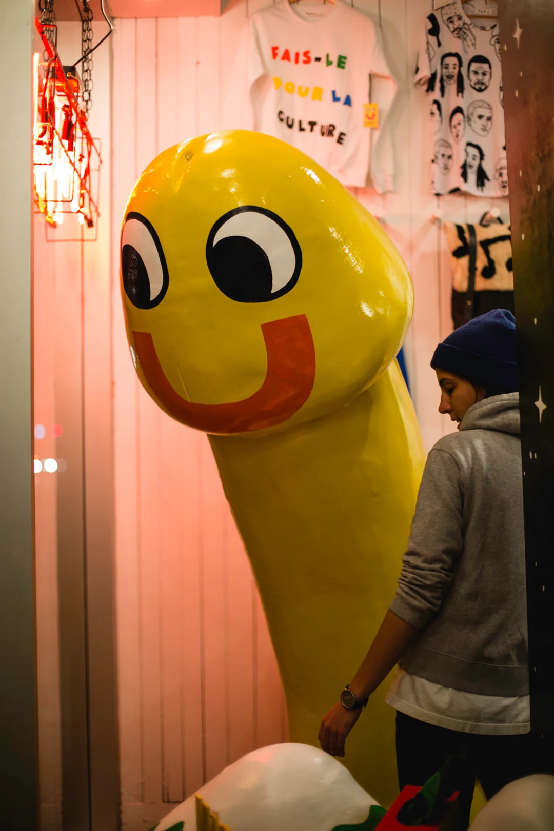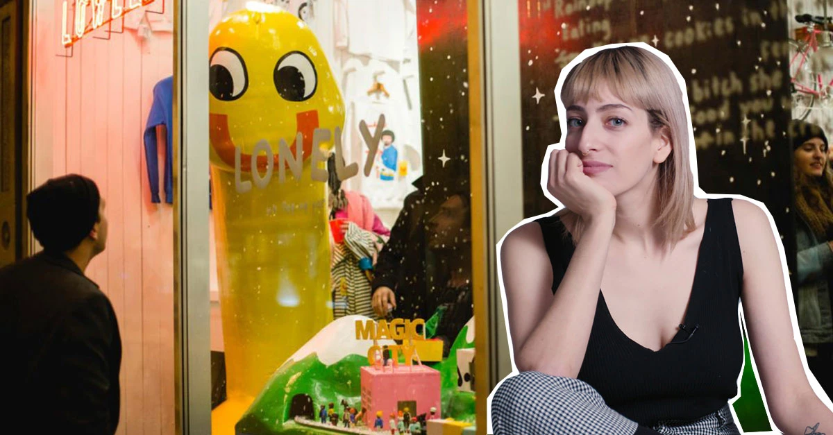 Terrifiée, Gabrielle l’est. Mais sans ressource, loin de l’être. La designeure a conçu il y a quelques années le pénis géant, Mr. Lonely, éjaculant de la neige pour une vitrine de Noël. Je ne sais pas pour vous mais pour ma part, je suis bien triste de n’avoir jamais vu ça, je pense que mon Noël eut été bien plus intéressant. Mais bon. Ce pénis qui l’a accompagné au cours des années a été mis en vente.