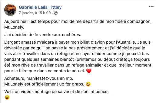 Pourquoi vendre cette œuvre magistrale ? Afin de financer son voyage. « Il a fait son temps avec moi et avec mon projet de voyage, je me suis dit que cette œuvre pouvait m’aider à créer quelque chose de positif. Et si tout se passe bien, je devrais m’envoler pour l’Australie en juillet. »