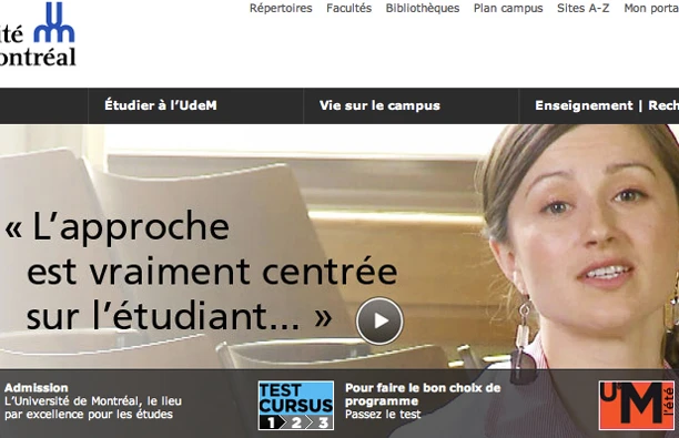 Le webmestre du site de l’Université de Montréal a vraiment un drôle de sens de l’humour. Alors que la direction vient d’embaucher une vingtaine de gardiens qui maintiennent la sécurité dans l’établissement à grands coups de « vos papiers? » et « décrisse ton camp! », on peut voir ceci sur la page frontispice du www.umontreal.ca…