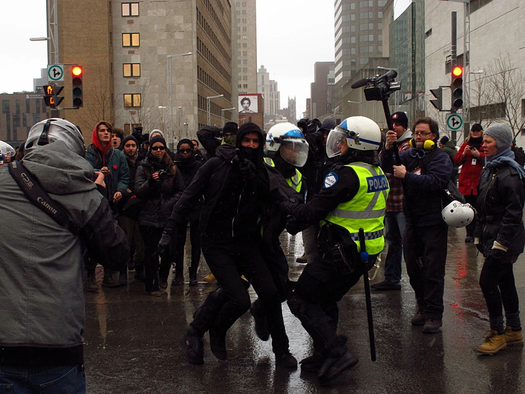 Pas un cri, pas une larme, ni même une exhalation interminable; un simple «oumph» tant ces images de répressions sont devenues communes. Montréal, mecque des arts éclatés, Silicon Valley en érable du jeu vidéo et maintenant décor en carton-pâte pour un mauvais film de science-fiction de série Z où des flics arrêtent manifestants, gens des médias, pandas et passants (!) au nom d’un règlement municipal dénoncé par des politiciens, des avocats et l’Association canadienne des libertés civiles, pour ne mentionner que ceux là.Mais ça… c’est ce que les médias voudraient nous faire gober…