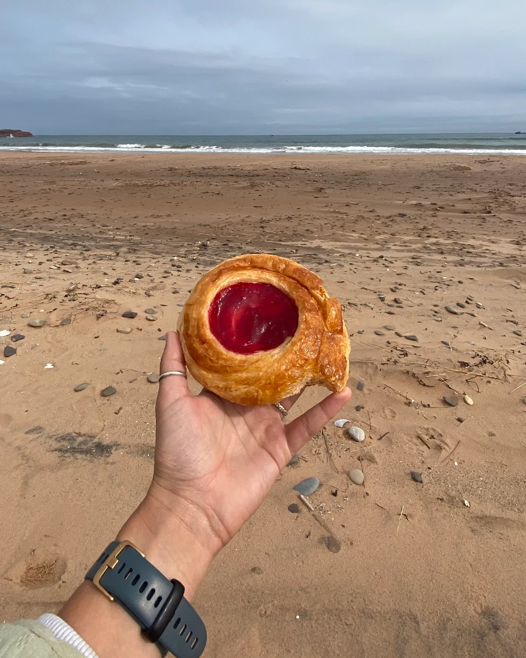 Alors, on débarque du bateau et on se dirige vers la pâtisserie Hélène des Îles pour take-out notre p’tit dej’ et aller le déguster sur le top de la butte à Mounette. C’est devant le magnifique tableau de maisons colorées bordant la mer qu’on a pu goûter aux meilleures viennoiseries de l’Île de Havre-aux-maisons.