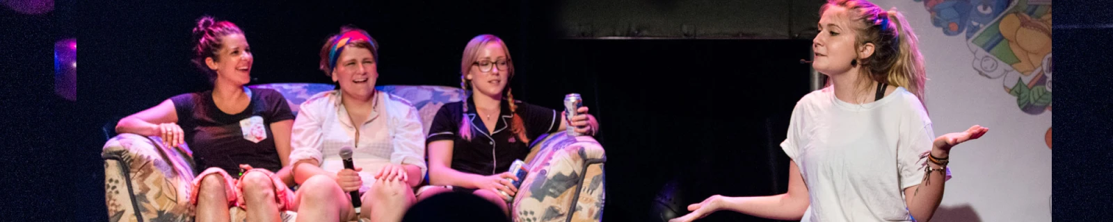Comme si le Zoofest était pas déjà assez frais, Rosalie Vaillancourt débarque sur la scène humoristique avec quinze kilos de crème glacée à la fraise, métaphore pour illustrer la fraîcheur qui émane de cette finissante de l’École nationale de l’humour. Même si on haït ça associer les jeunes filles à la fraîcheur, il faudra faire fi de son code d’éthique personnel parce que c’est bien ce que vend Rosalie Vaillancourt. Elle nous convie à son pyjama party, New Girls, au Cabaret du 4e du Monument-National, accompagnée de ses amies humoristes, Ève Côté, Coco Béliveau et Maude Landry.