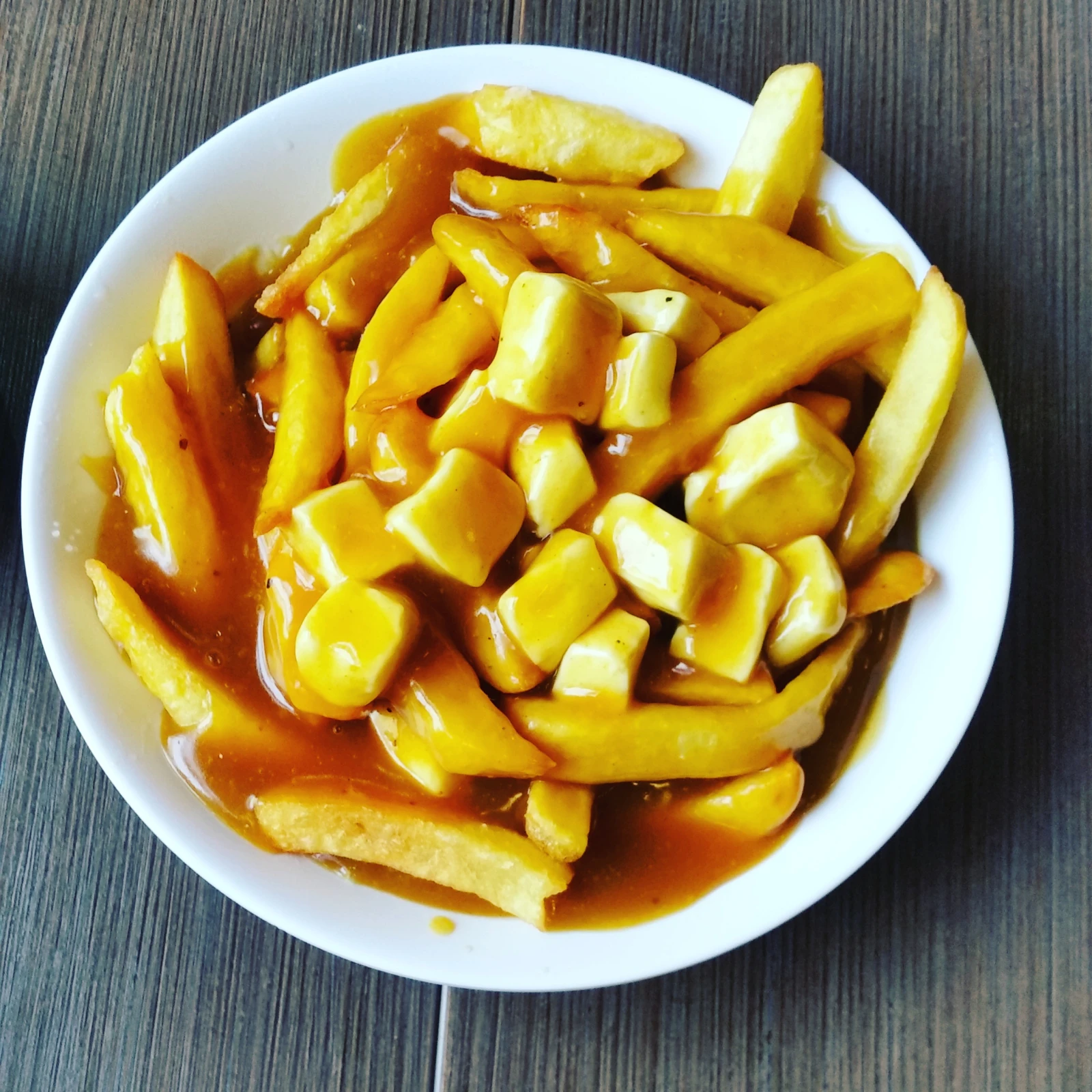 On est allé à l’essentiel, une bonne poutine bien classique. On a reçu une montagne de frites, avec de la sauce brune puis du fromage squik-squik. J’étais aux anges.