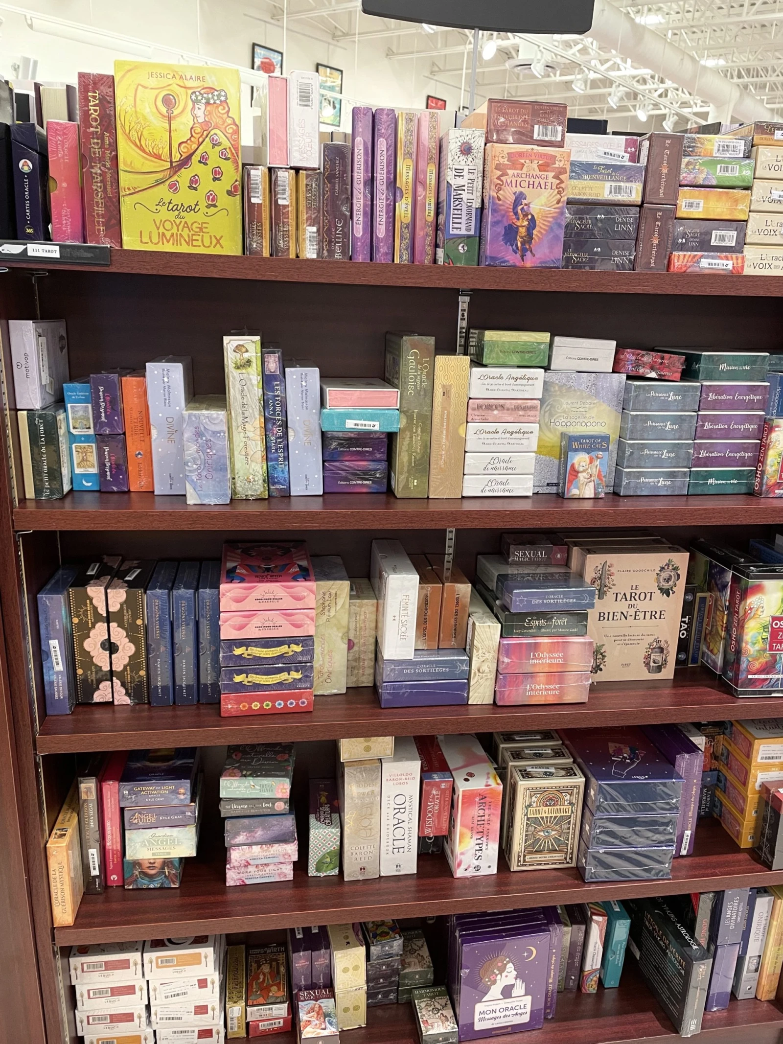 Je suis au Renaud-Bray. Oui, je préfère les librairies indépendantes, mais exceptionnellement, j’ai choisi la voie de la facilité : il y a 24 h dans une journée, il faut parfois choisir ses combats. Je cherche Dune – le livre, pas le film –, je relève la tête et, surprise, plutôt que des étagères remplies de bouquins, c’est un mur de jeux de tarots qui se dresse devant moi. Le Tarot du Voyage lumineux, le Tarot des Mondes oniriques, Osho Zen Tarot, Le Tarot du Bien-être, et même un Tarot du Tatouage!