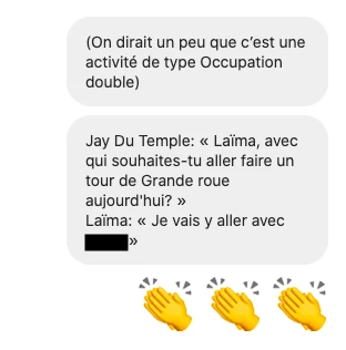 Fière de mon approche, que je qualifierai de «mystério-cute», j’attends patiemment la réponse de mon prospect. « Je suis libre. J’ai pas le vertige. Pourquoi? ». Après lui avoir expliqué dans quoi j’étais en train de l’embarquer, il me demande s’il sera mon Instagram husband pour la soirée. Je prends ça pour un oui et ajoute: