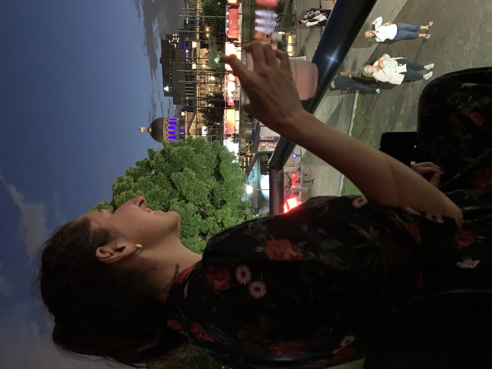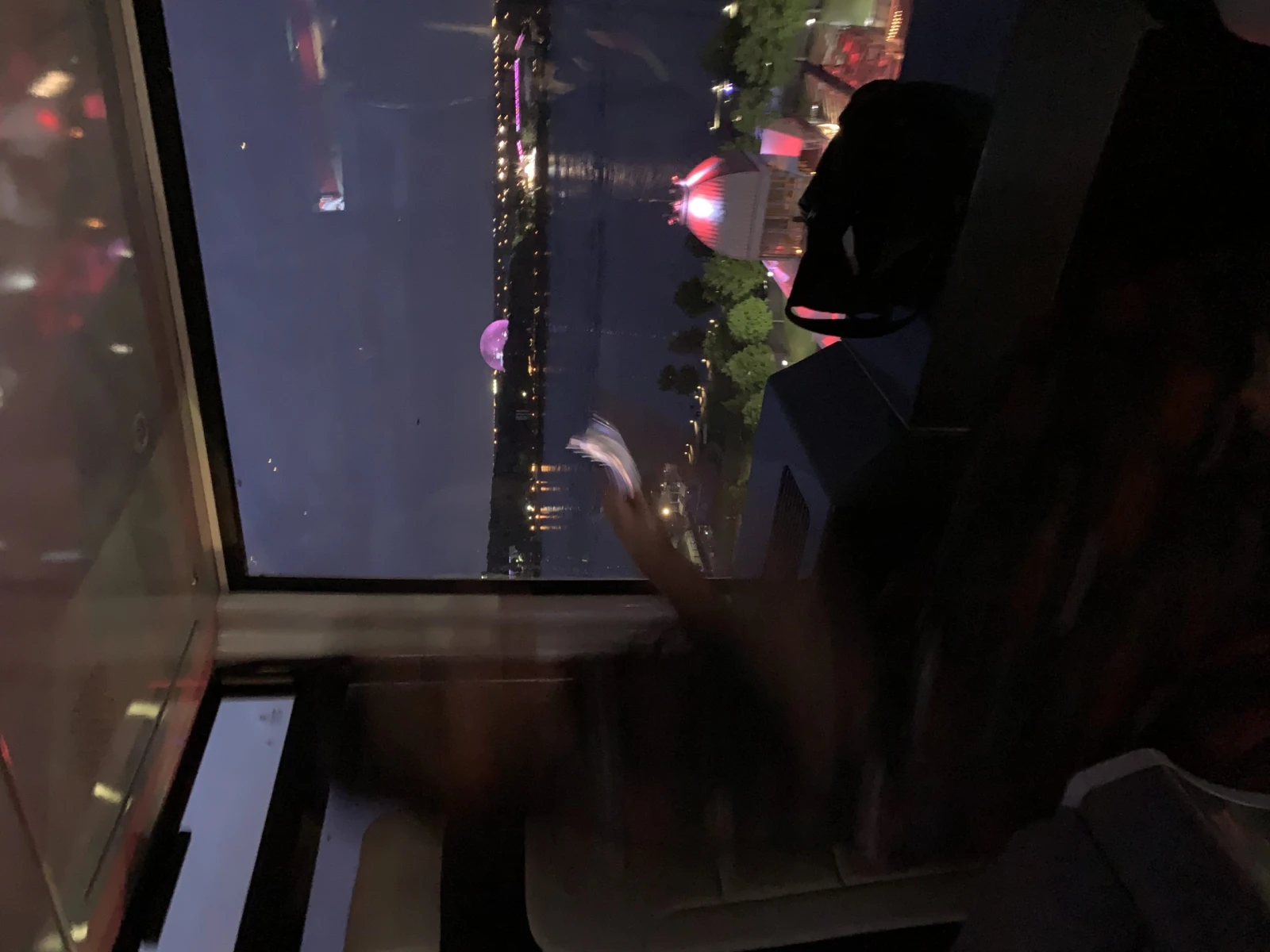On nous invite à monter dans la cabine 42, celle dont le plancher est en verre et dont les sièges sont en cuir italien. Rien de trop beau. La Grande Roue entame sa rotation. Le jour tombe sur le pont Jacques-Cartier, on voit la croix du Mont-Royal au loin, les immeubles du Centre-Ville, les magnifiques bâtiments du Vieux-Port et le fleuve à perte de vue. Les lumières de la ville s’allument une à une, comme des centaines de petites étoiles qui veillent sur notre soirée. C’est sublime vu d’en haut. On se rappelle soudainement que je dois documenter l’expérience, mon InstaHusband immortalise donc le moment, en mode flou artistique.