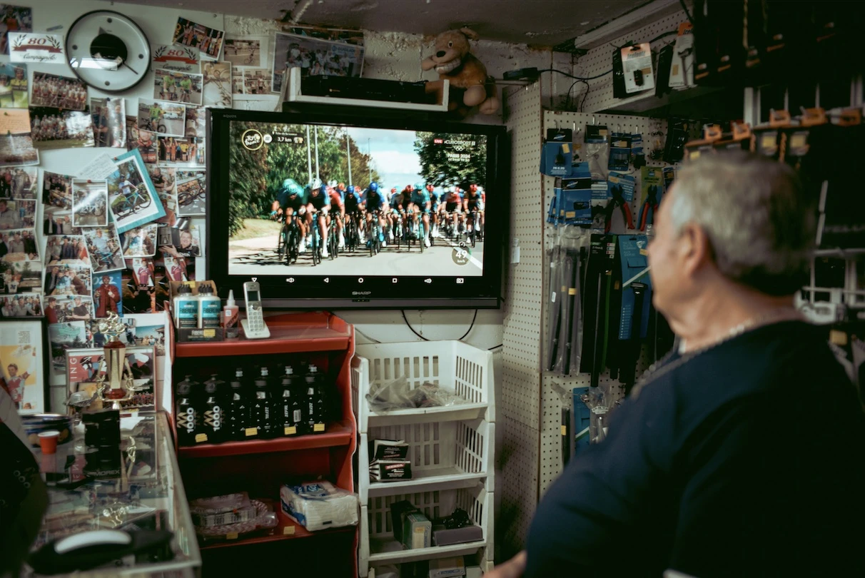 Sur l’écran de télévision du Centre du Vélo 82, un grand sous-sol dans l’est de Rosemont, les coureurs du Tour de France avancent en peloton serré, avec encore 141 kilomètres à parcourir avant d’atteindre la ligne d’arrivée à Dijon. Une étape dédiée aux sprinteurs qui ne promet un spectacle qu’à ses derniers kilomètres. Nous avons quelques heures devant nous.