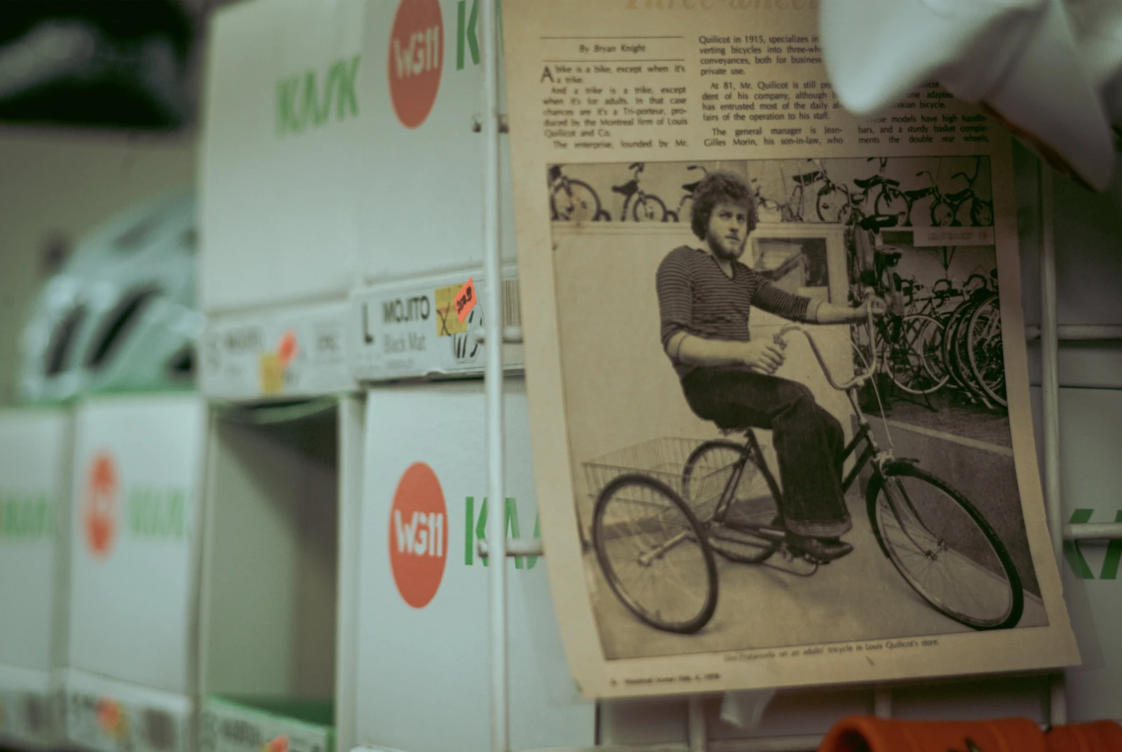 Mais pour cela, il faut un boulot. À l’intersection des rues Ontario et Saint-Denis, Domenico présente Elio à Louis Quilicot, fondateur de Bicycles Quilicot, la plus ancienne boutique de vélo à Montréal et considéré comme le père du cyclisme québécois.