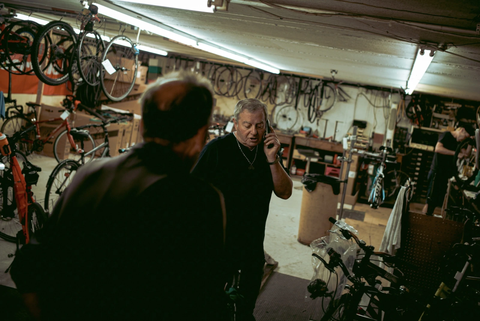 « J’ai du café spécial qu’on ne trouve pas partout », murmure Elio Fratangelo avec un clin d’œil. En toute discrétion, il verse quelques gouttes de sambuca dans un espresso fumant. « Ce n’est pas une simple boutique de vélos, ici, c’est un bar à vélos », ajoute-t-il, en ouvrant un pot métallique rempli de biscuits au beurre.