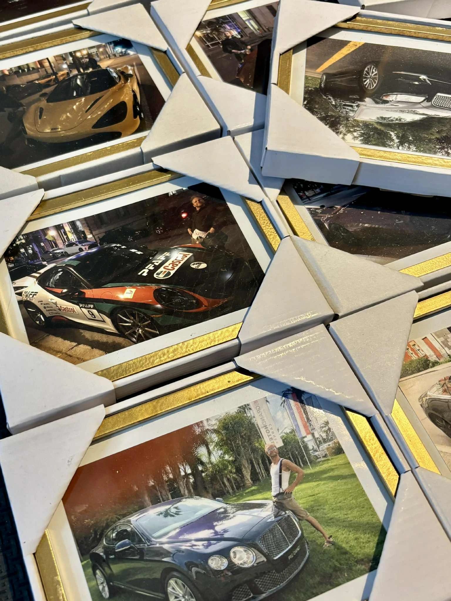 Un projet qui trouve son aboutissement sur le plancher de son atelier, où sont étalées ces dizaines de clichés contenus dans de chics petits cadres dorés. Dans cet océan de roupettes, on retrouve sa toute première photo, celle de la Rolls-Royce néo-zélandaise, agrandie pour l’occasion.