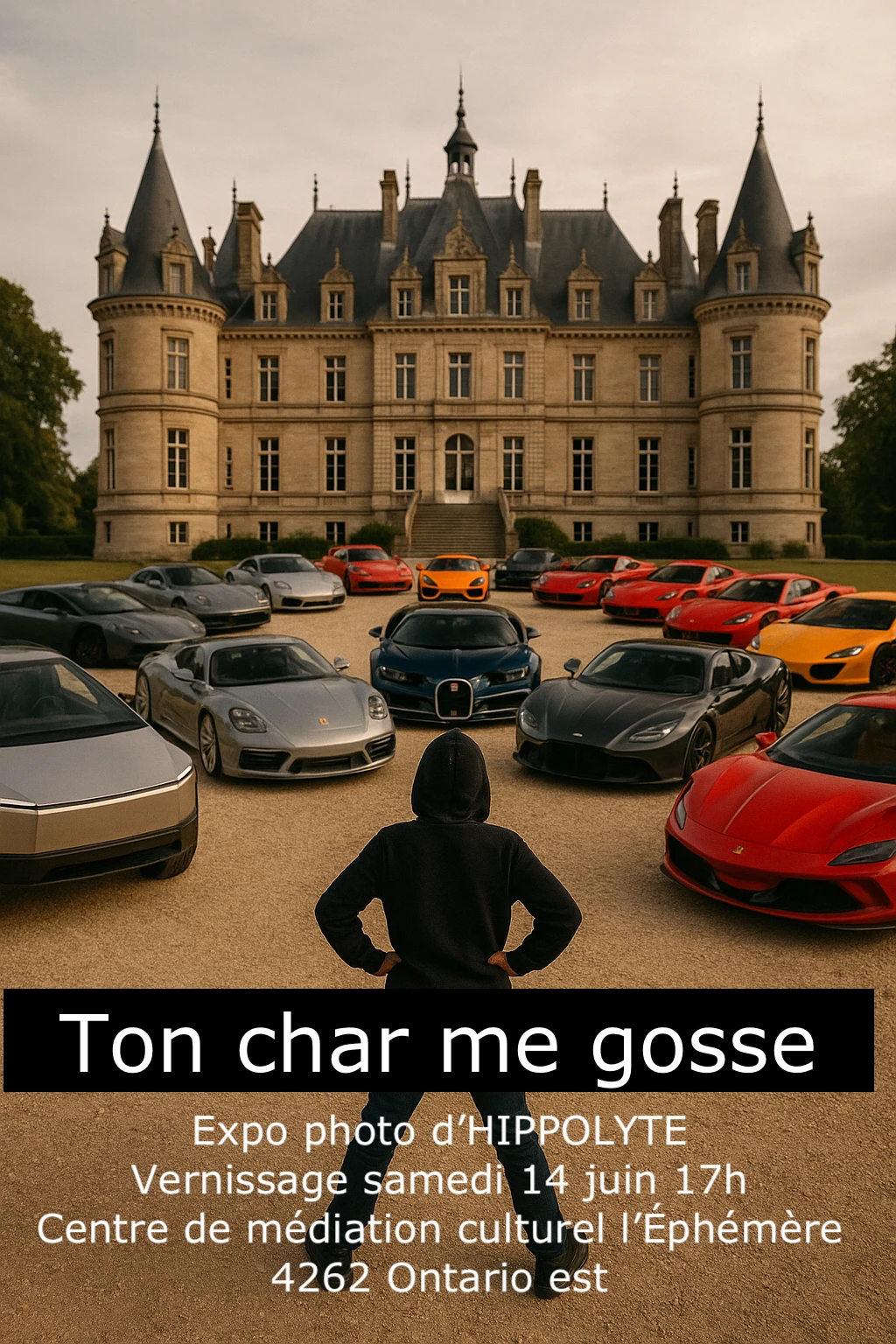Avec l’exposition Ton char me gosse, présentée les 14 et 15 juin au Centre de médiation culturel l’Éphémère dans Hochelaga, l’artiste a trouvé une manière pour le moins inusitée (euphémisme) de protester contre le culte des chars de luxe.