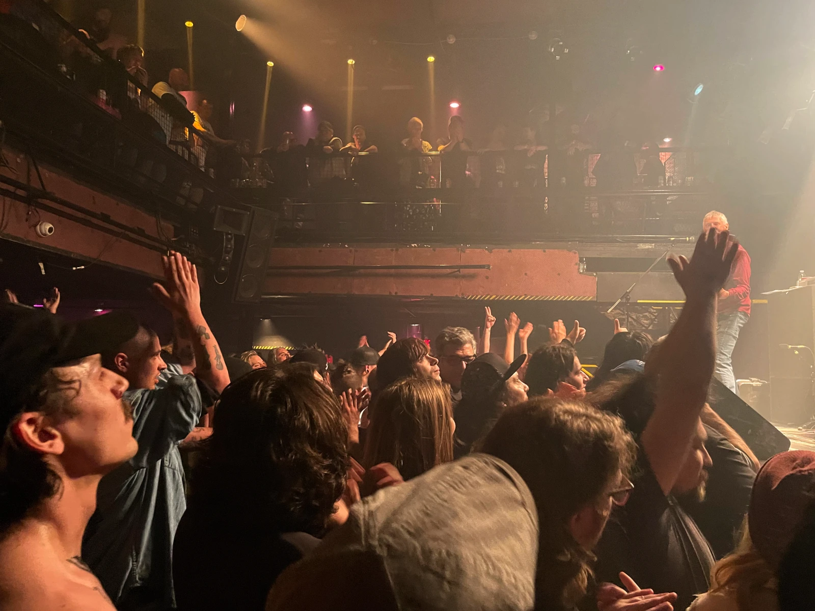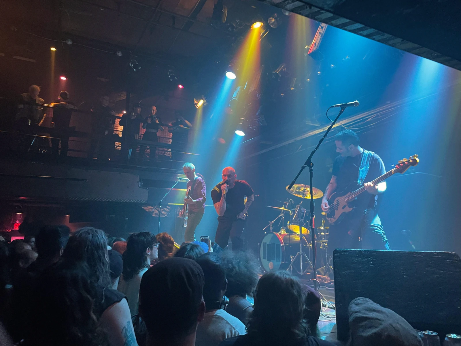 Une fois l’heure du show arrivée, toujours pas de nouvelle du groupe! Ben m’assure que le spectacle aura lieu, mais que c’est juste cool de commencer en retard. Donc on attend, mais je sens que la foule commence à se densifier, les gens se faufilant pour être au-devant de la scène. Nous, on se retrouve sous une enceinte, tout à droite.