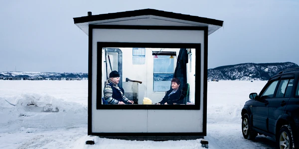 À l’intérieur, Diane et Réjeanne pêchaient à la chaleur de la fournaise, bien calées dans leur chaise berçante, canette de Coke à la main. J’ai tiré une chaise pour jaser. En fumant cigarette sur cigarette, les deux femmes dans la cinquantaine m’ont racontée qu’elles passaient tous leurs hivers à la pêche sur glace depuis cinq ans: 56 jours par saison très exactement. «Pis de quoi vous parlez quand vous venez? Vous devez pu avoir grand chose à vous dire?» leur ai-je demandé. «On se parle pas vraiment, mais on jase avec le monde, a répondu Diane. C’est le fun, ça nous détend, pis ça fait que l’hiver passe plus vite.»