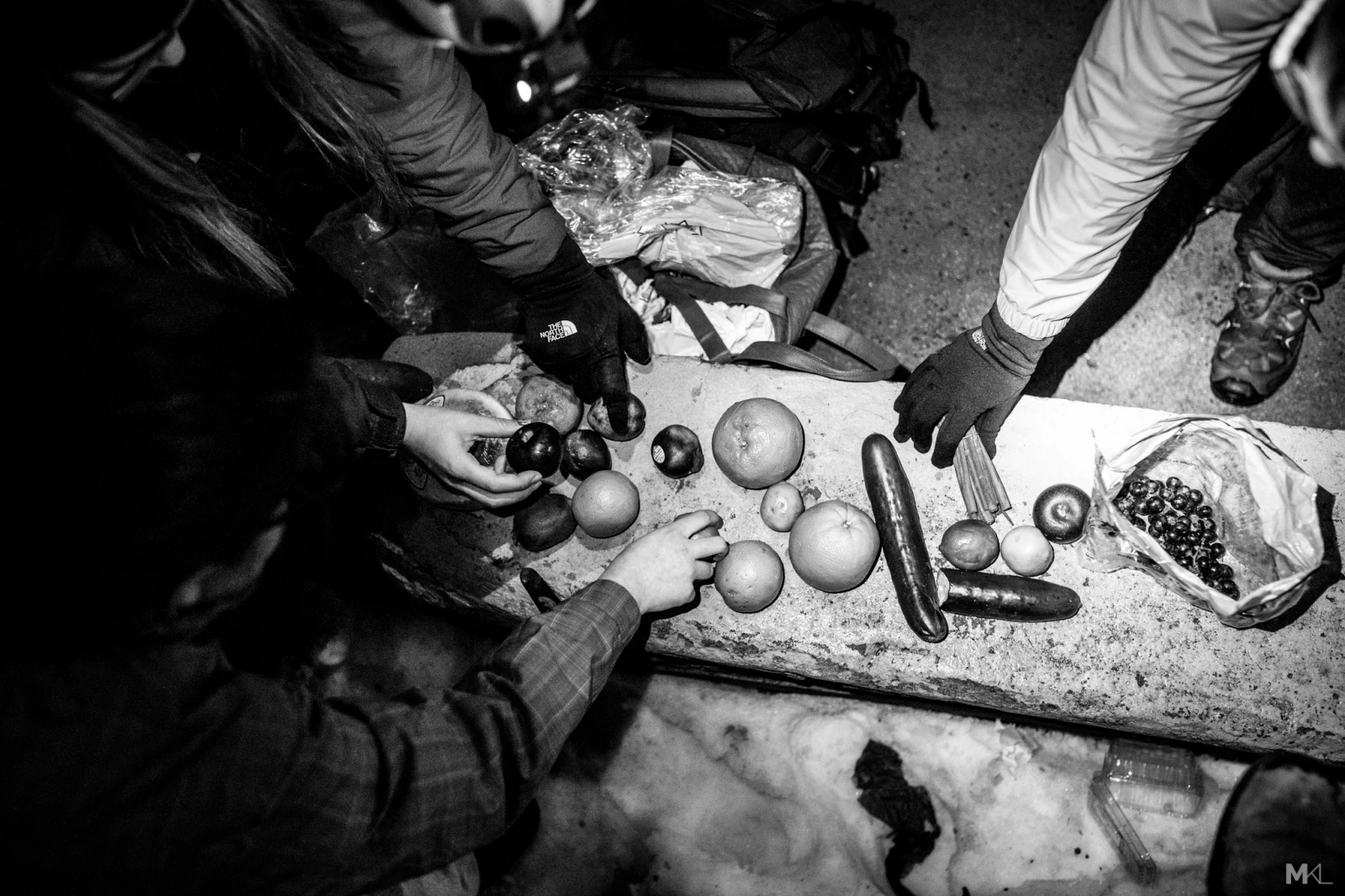 Quand ils en ont fini avec un dumpster, le rituel est toujours le même : tous les produits trouvés sont étalés au sol, puis partagés entre tout le monde. On est bien loin de l’ambiance Black Friday : ici on n’arrache rien des mains des autres. Et s’il y a rarement de quoi partager équitablement chaque produit trouvé, tout le monde y trouve quand même son compte.